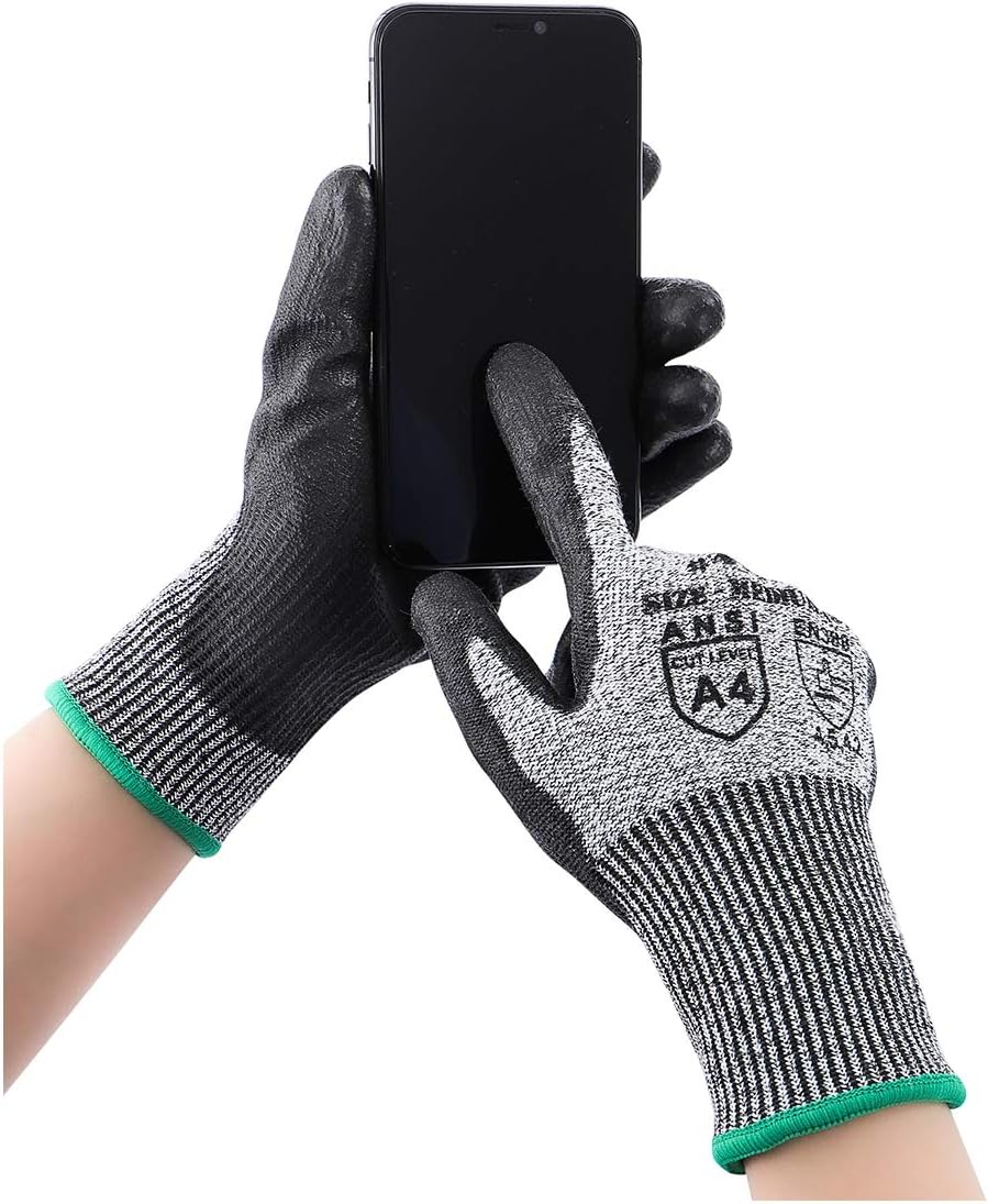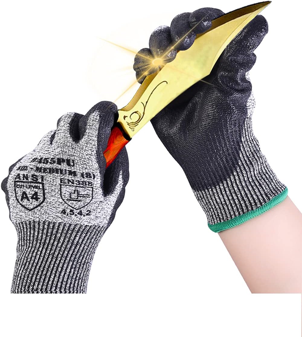 Donfri 1 Pair Cut Resistant Gloves High Performance Level 5 Protection Safety Work Gloves for Men Comfortable PU Coated Palm Cut Proof Gloves Gardening Food Grade Non-slip Machine Washable (Medium)