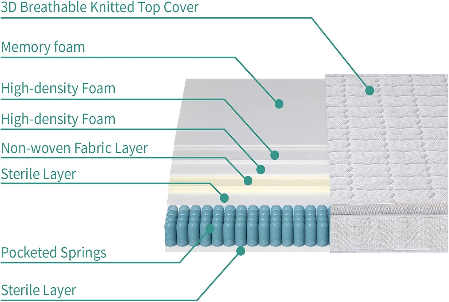 dosleeps 10.2 Inch King Size Mattress 9-Zone Pocket Sprung Mattress with Memory Foam and 3D Fabric – Orthopaedic Mattress (5FT(150 x 200 x 26cm)) …