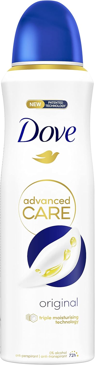 (as of [price_update_date] – DetailsCaring for your underarms is an important part of any skin care routine. With Dove Advanced Care Original Anti-perspirant Deodorant Spray, you can give your skin the care it deserves, while feeling fresh with 72-hour protection from odour and sweat. With its signature Dove Original fragrance, this reviving anti-perspirant deodorant aerosol is just the thing to help you kick-start your day with confidence and keep you smelling fresh and clean all day long. It works hard to protect your skin, and, featuring Dove’s most advanced formula, it helps to reduce underarm irritation caused by shaving. This moisturising deodorant is infused with revolutionary Triple Moisturising technology, featuring moisturising agents that work like water magnets to draw in moisture, as well as premium caring ingredients that deliver softer, smoother underarm skin. With the utmost care, this moisturising deodorant boosts your skin and helps to reduce underarm irritation caused by shaving. To experience the freshness of the Dove Original fragrance, hold this anti-perspirant deodorant approximately 15 cm away from your skin and spray for one to two seconds on each underarm. Dove Advanced Care Original Anti-perspirant Spray comes in a 100% recyclable metal can that’s made with 25% recycled aluminium, which is infinitely recyclable, so you can care for your skin and the planet. Dove has also launched 200ml compressed deodorants that last just as long as the previous 250ml deodorants – but with less packaging, and less waste. This new and improved design reduces the amount of gas needed, but you still get the same amount of protection with every spray. Discover more at Dove.com.