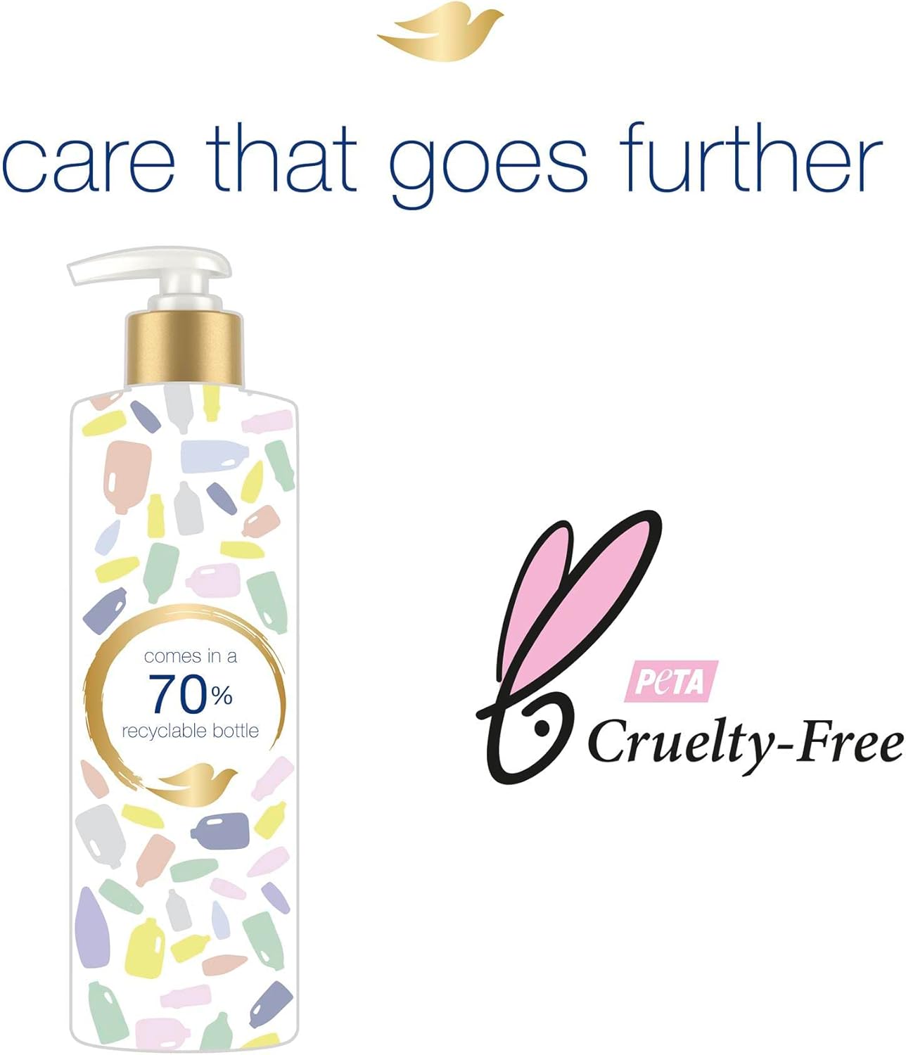 Dove is working to care for both people and the planet. This PETA-approved product comes in a 70% recyclable bottle, while we are working towards 100% recycled plastic bottles.