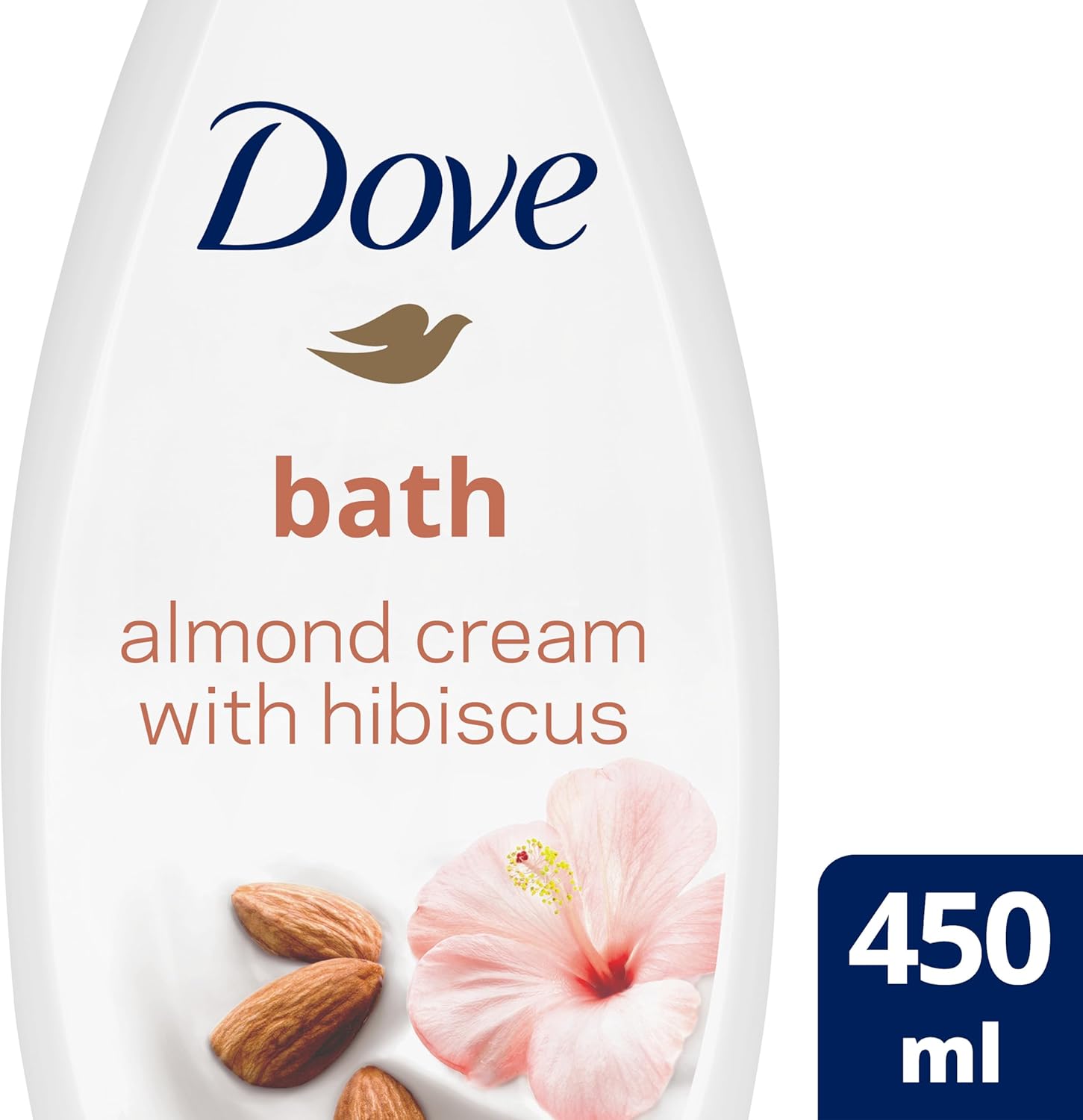 Dove Purely Pampering Almond Cream and Hibiscus Bath Soak with ¼ moisturising cream for an indulgent bubble bath 450 ml