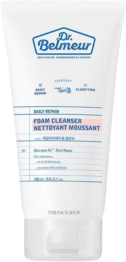 Dr. Belmeur Daily Repair Foaming Cleanser 150ml, Soothing Hydrating Foam Cleansing, Soft Abundant Bubble Gentle Gel-type Facewash, Skin-friendly Low-allergen Clean Beauty Korean Skincare