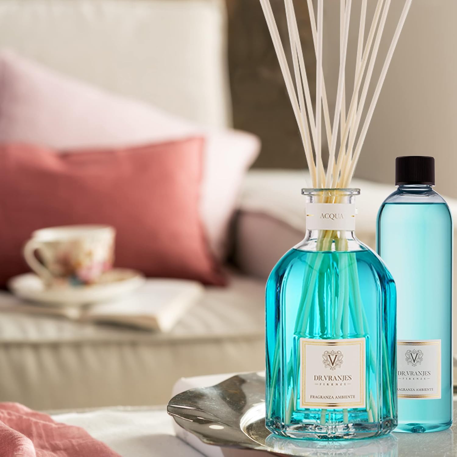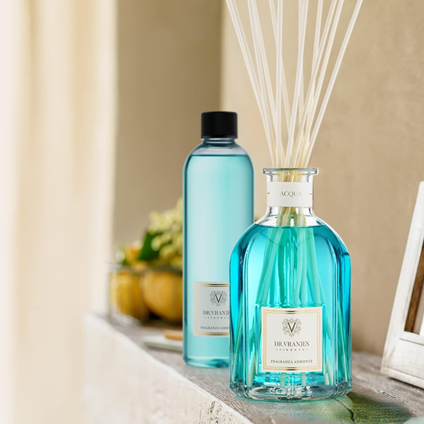 Dr. Vranjes – Acqua 500 ml Refill + Double Pack of White Sticks (3 Pieces Bundle)- Luxury Home Fragrance, Made in Italy, Main Scent: Fresh and Marine, Basil, Marine Notes, White Musk