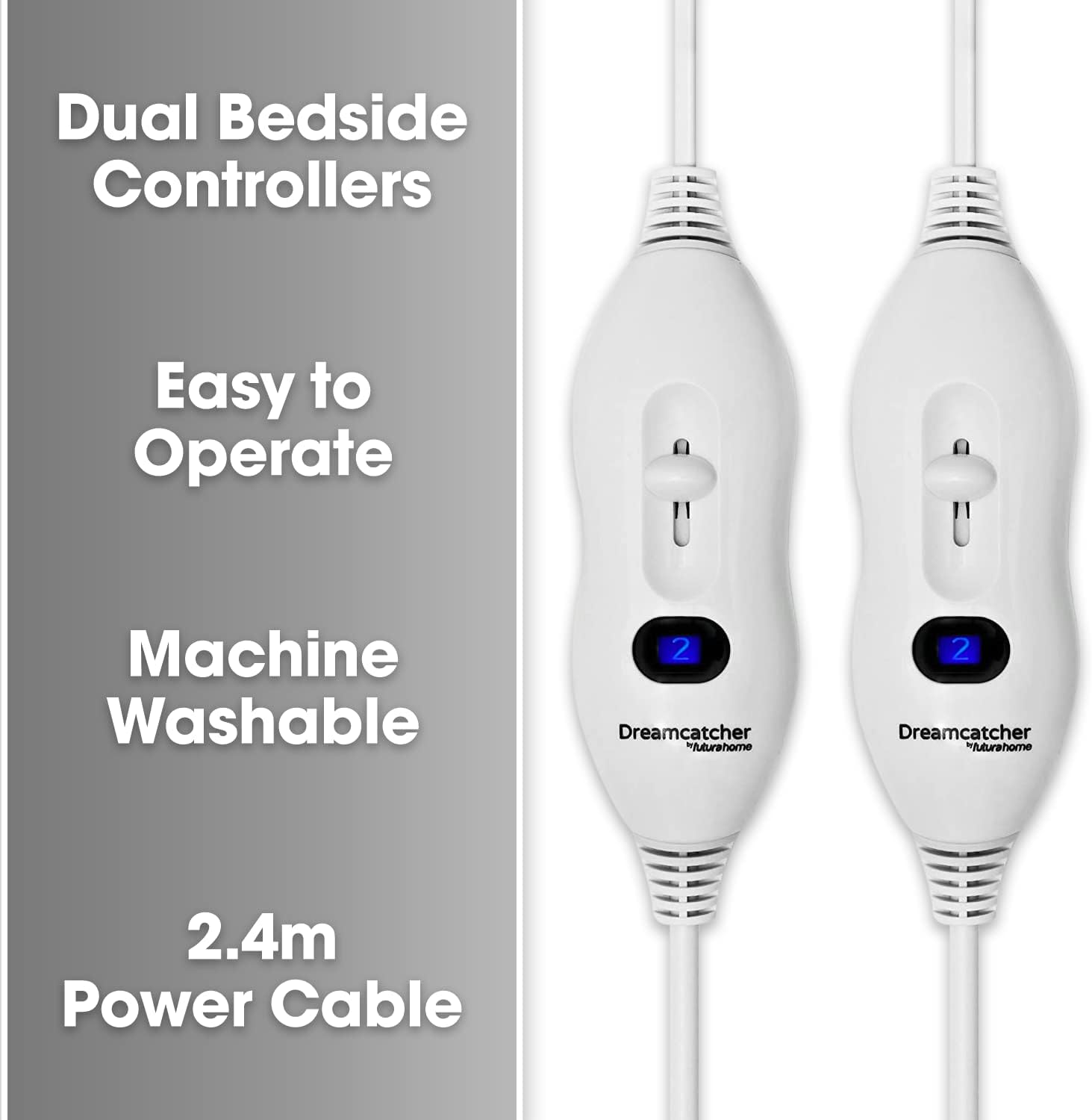 Dreamcatcher Double Electric Blanket 193 x 137cm, Soft Polyester Electric Blanket Fitted Underblanket Mattress Cover, 3x Heat Settings, 2x Controllers and Machine Washable Heated Blanket