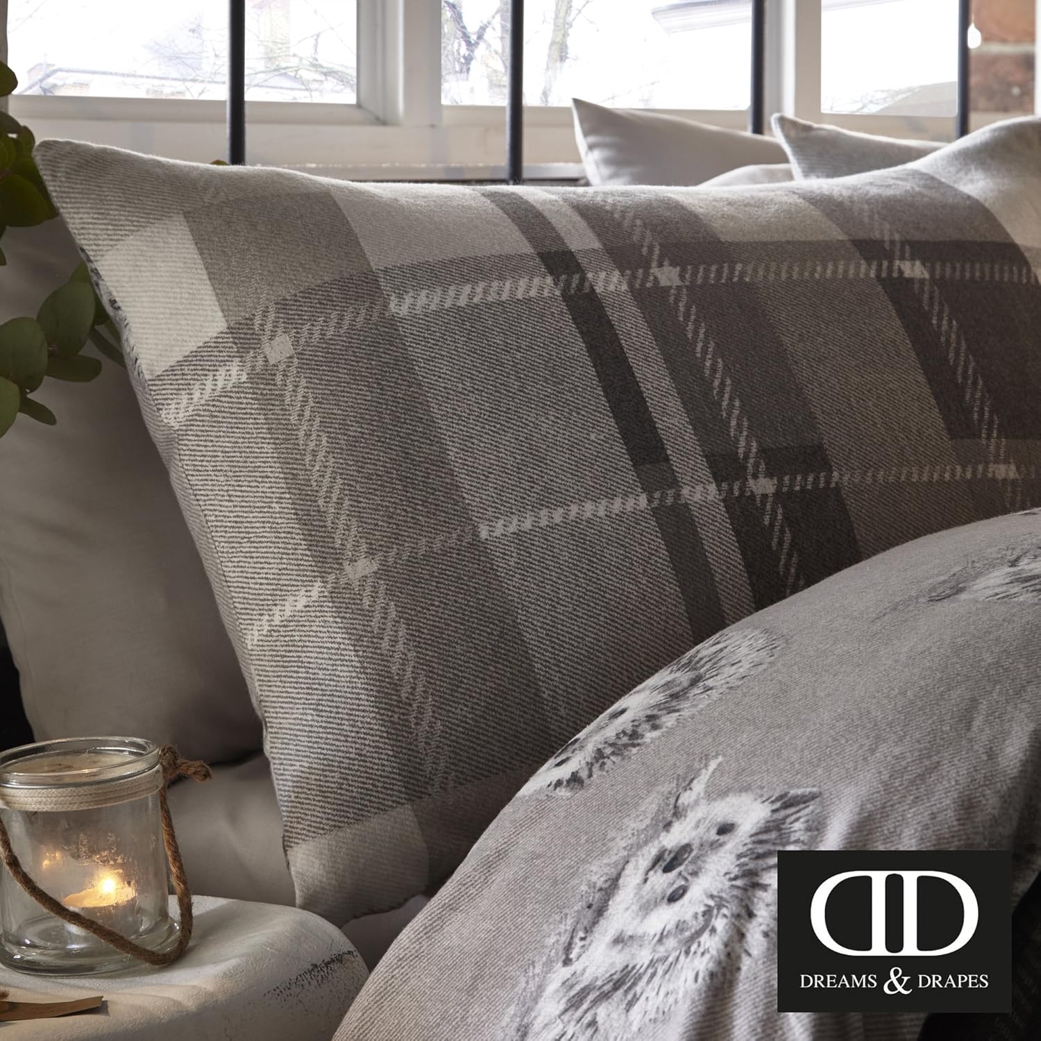 Dreams & Drapes Grey Checkered Sets-Double Size (200 x 200cm) -Animal Hedgehog Duvet Cover Flannelette Bedding-Super Soft 100% Cotton-Reversible Design-Colville Check Collection