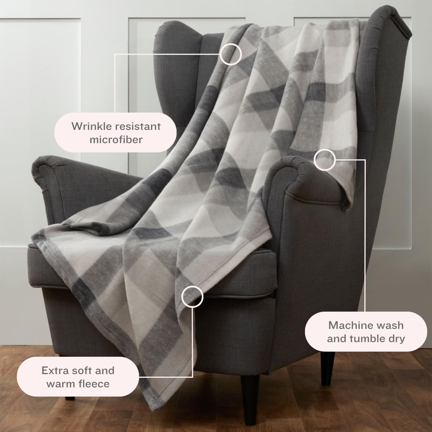 About this item Perfect Gift Colour: Soft grey throw blanket with a checked print. Size: 125cm x 150cm approximately which is more then enough to cover yourself! Material: 100% non shedding anti pilling polar fleece polyester. Easy Care: Machine washable on gentle cycle at 40°C – Tumble dry on low heat or hang dry. Includes: 1 warm fleece throw.