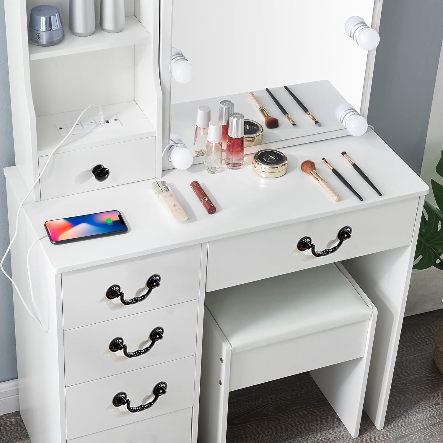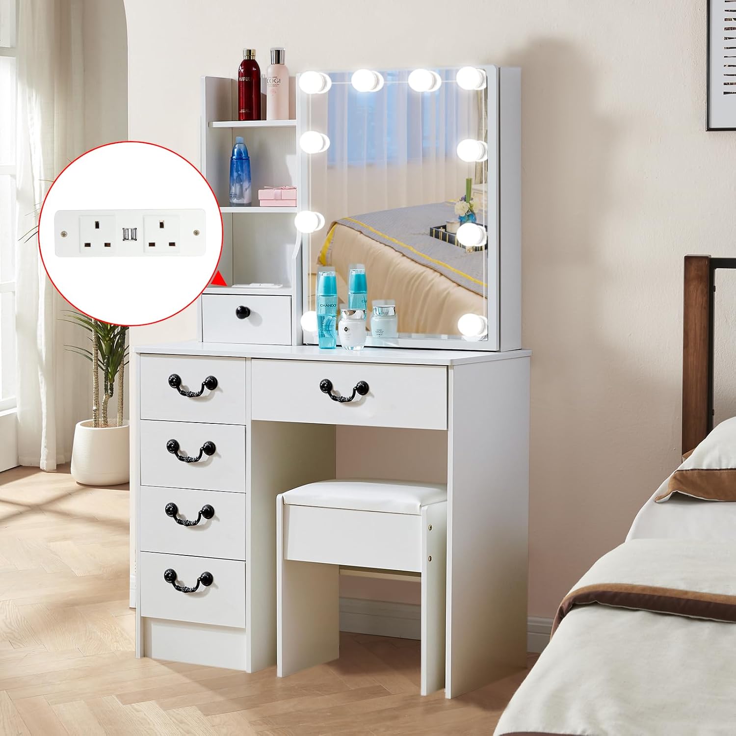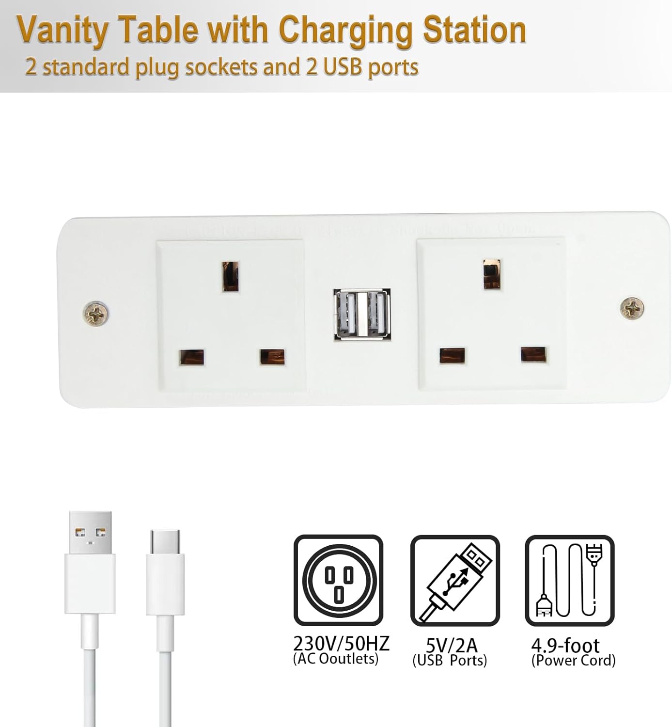 with Charging Station: The makeup vanity features a charging station, which includes 2 standard plug sockets and 2 USB ports. So you can connect your hair dryer, phone more convenient.
