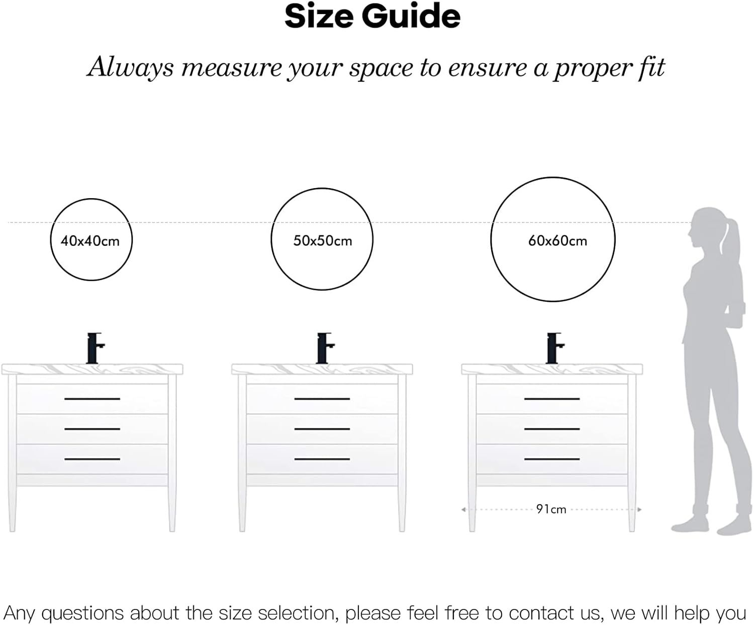 【Premium Round Mirror】- Available in three sizes, 40/50/60cm(appro16/20/24″) in diameter, perfect for entryways, bathroom, dressing room, bedroom, living room & washrooms or any spaces that need a touch of style