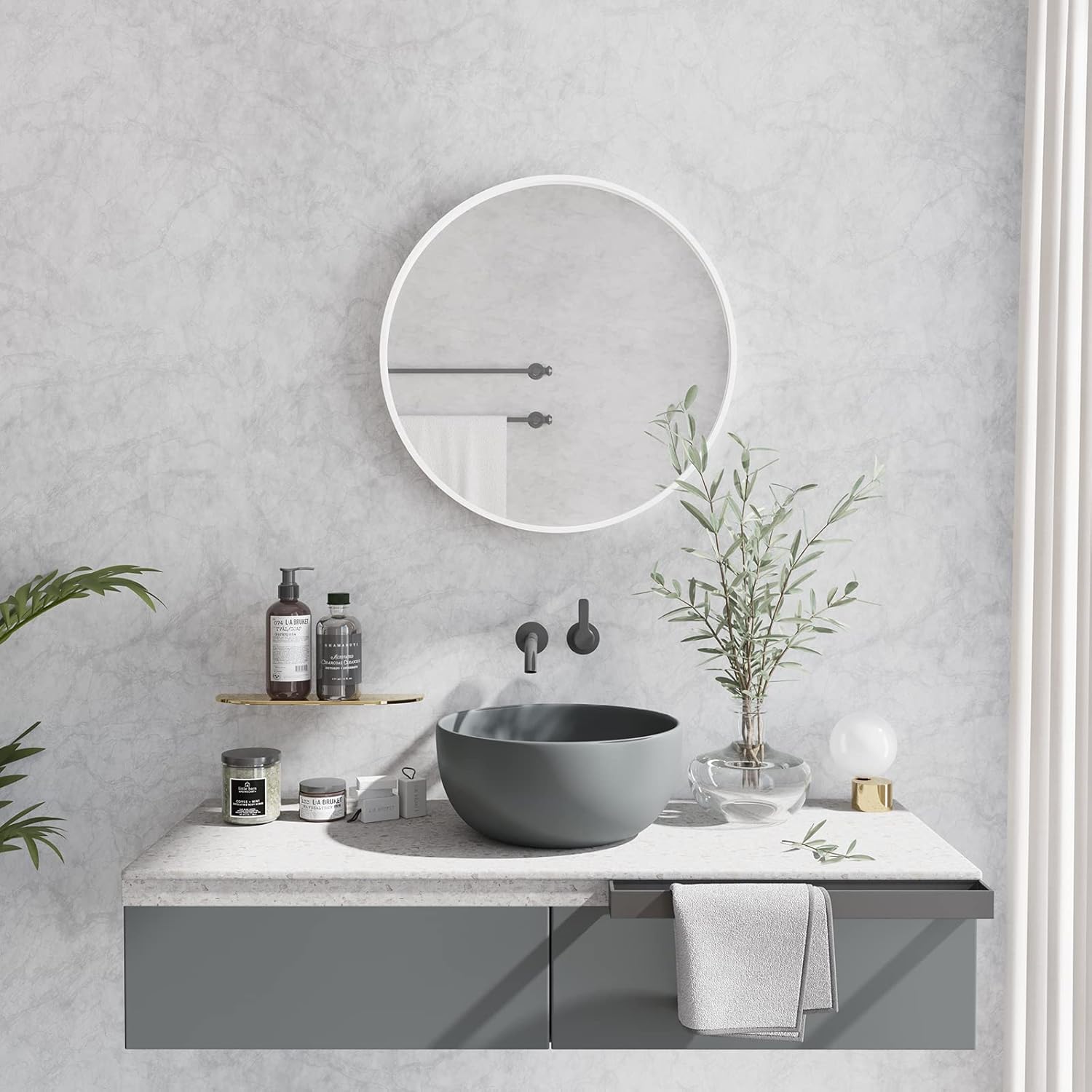【Modern Durable Design】- Round mirror designed with an elegant strong aluminium alloy frame, which brings a lasting and soft luster and ensures the durability of our round mirror. And Its back is sealed with a medium density fiberboard, which can resist water or dust. Our mirror has longer working life