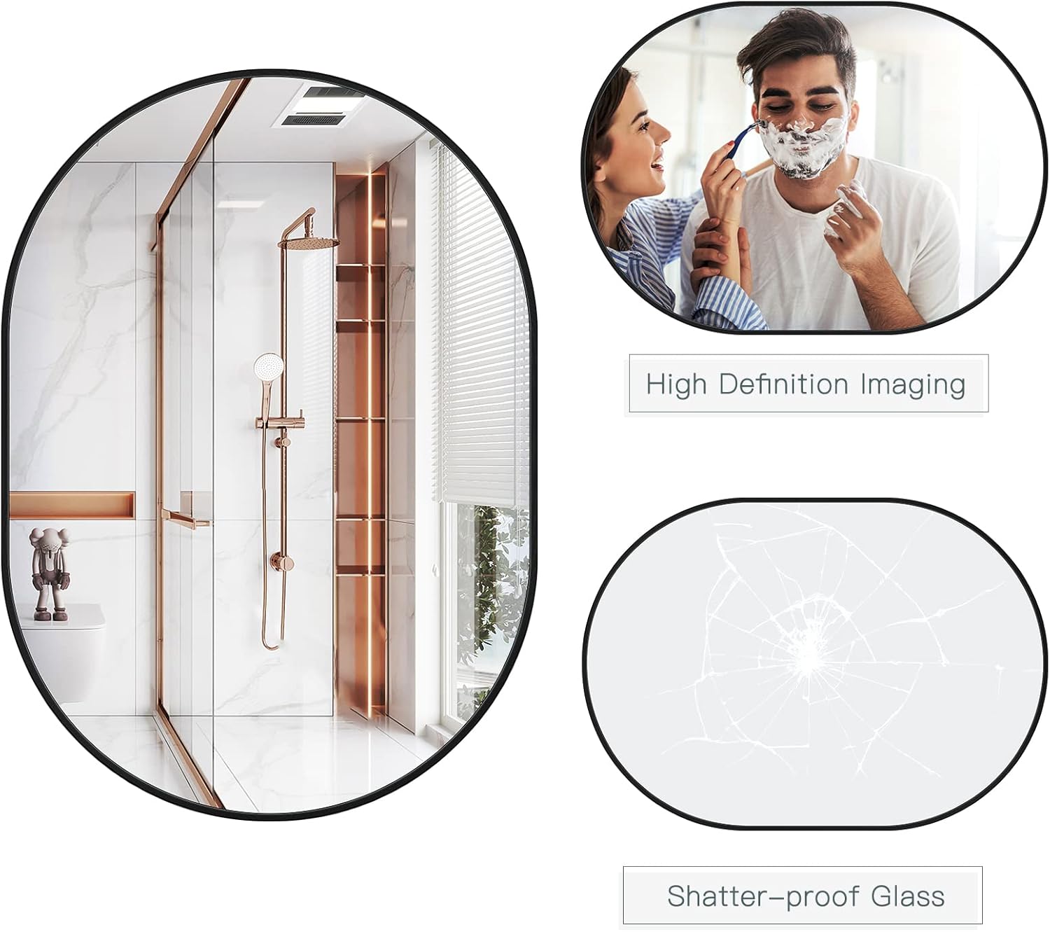 【Modern Durable Design】- Oval mirror designed with an elegant strong aluminium alloy frame, which brings a lasting and soft luster and ensures the durability of our mirror. And Its back is sealed with a medium density fiberboard, which can resist water or dust. Our mirror has longer working life