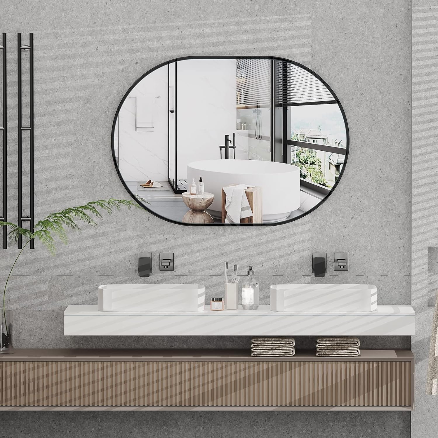 Dripex 50 x 70cm Oval Mirror, Wall Mounted Bathroom Mirror, Horizontal or Vertical Hanging Wall Mirror for Living Room, Bedroom, Entryway, Black
