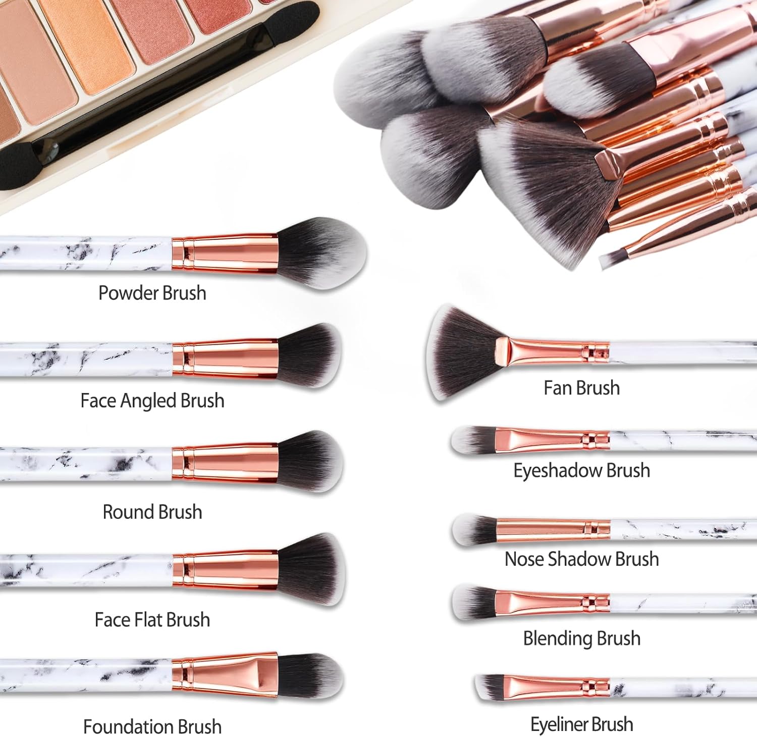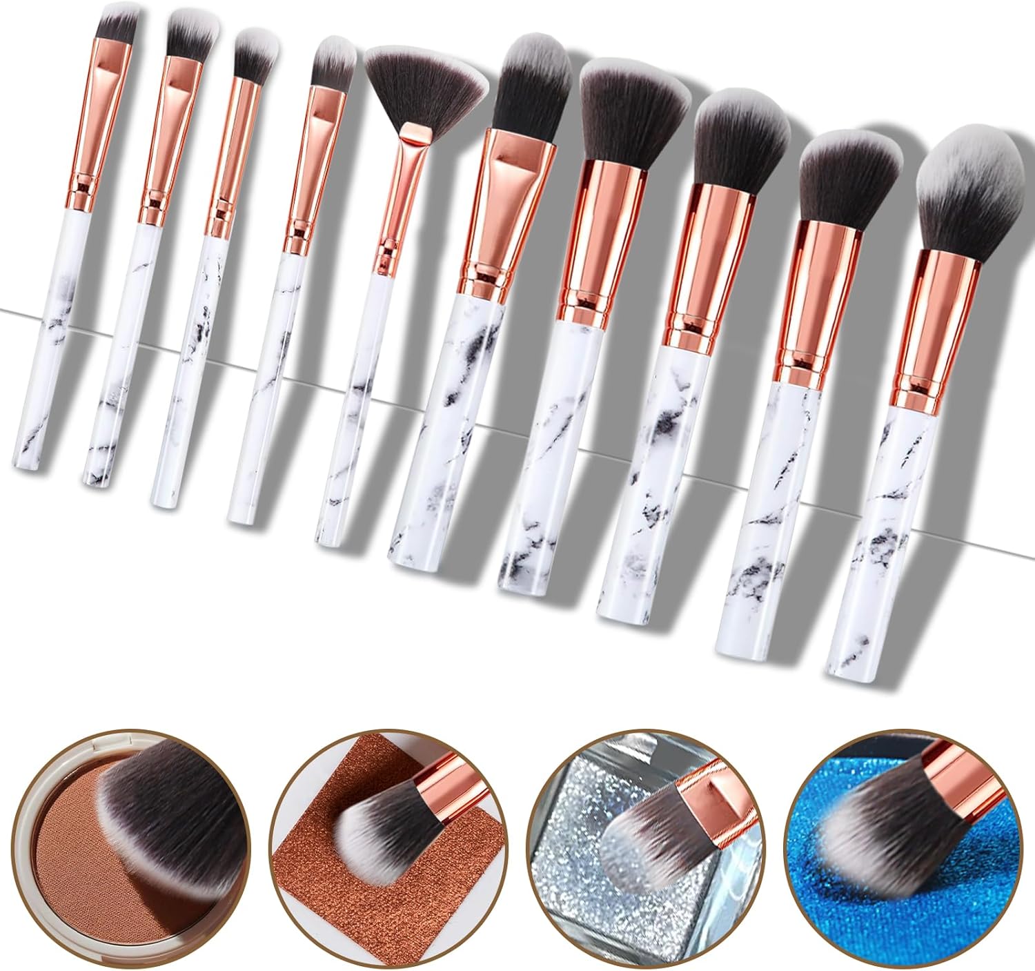 DUAIU 10pcs Marble Makeup Brush with Bag