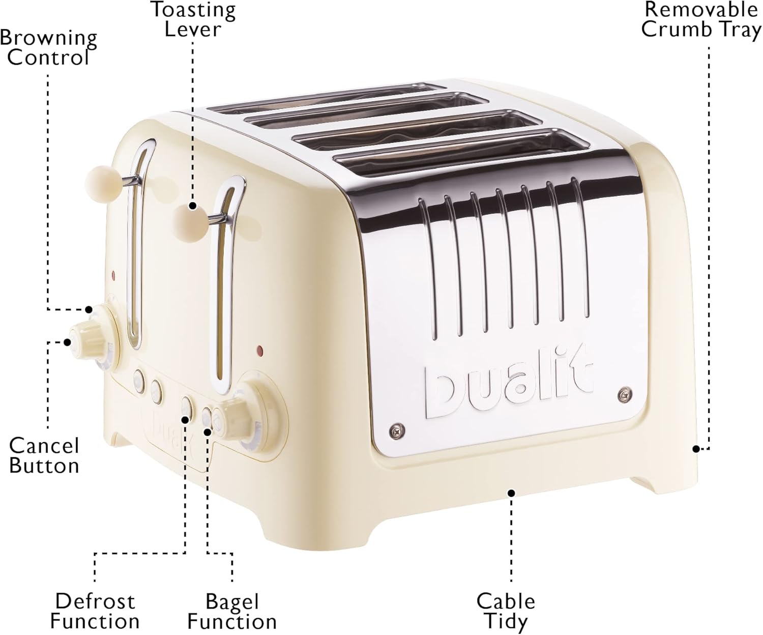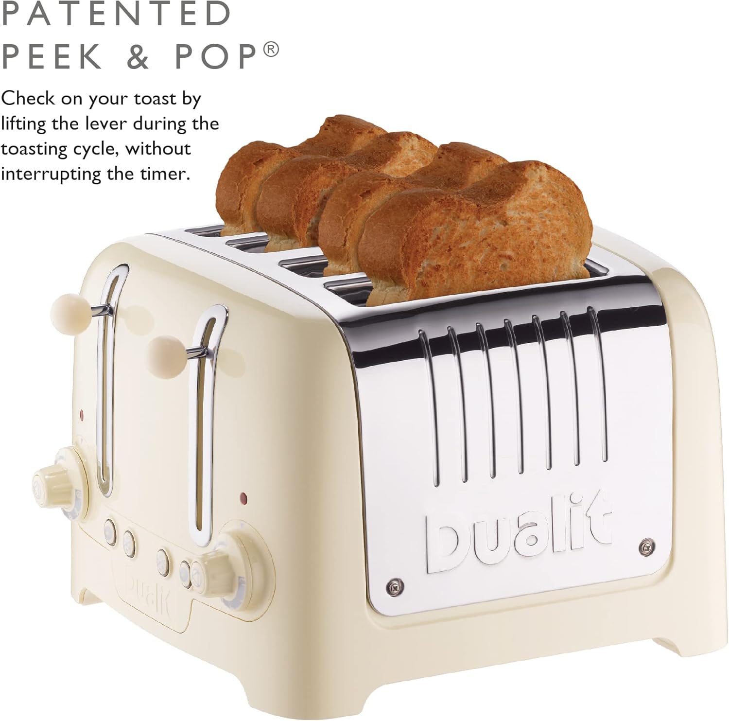 Dualit 46202 4 Slice Lite Toaster | 2kW Toasts 120 Slices an Hour | Polished with High Gloss Cream Trim | Bagel & Defrost Settings | 36mm Wide Slots
