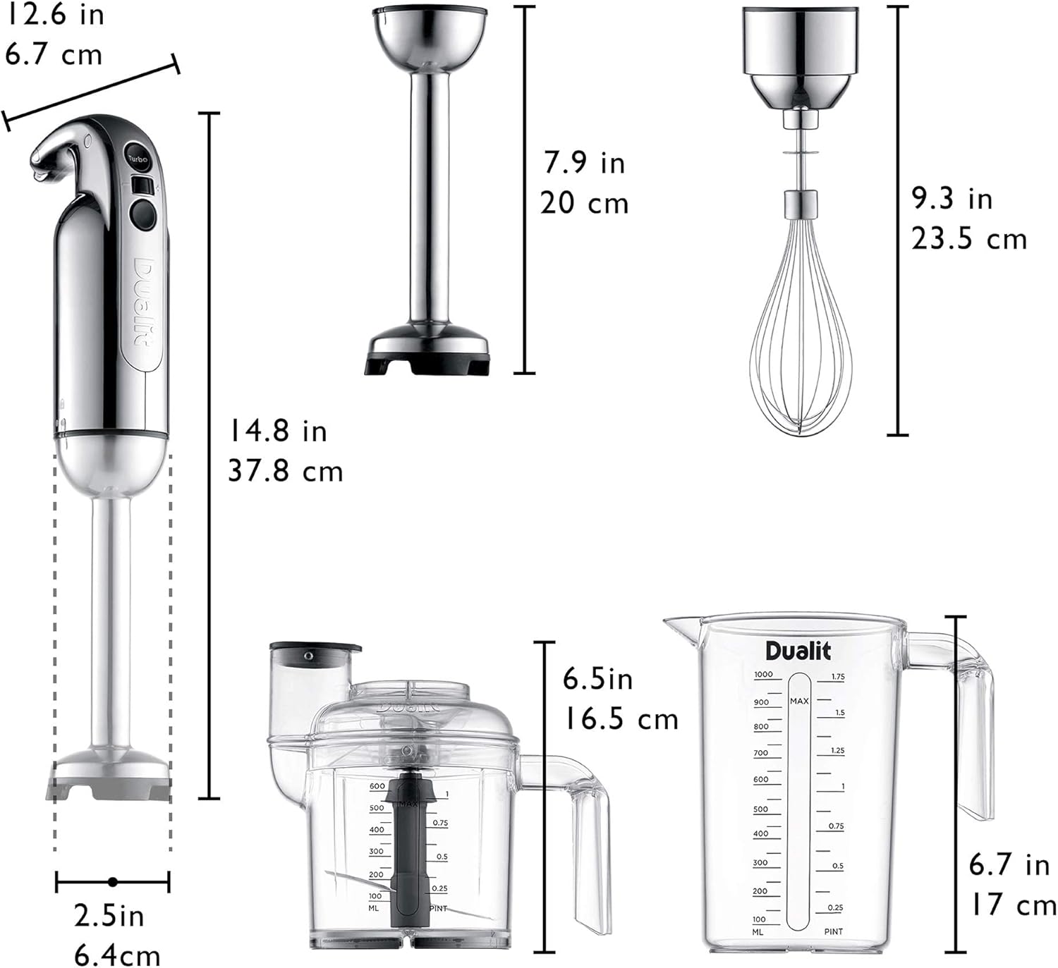 Dualit Hand Blender Set | Handheld Stick Blender With Chopping Bowl, Whisk & 1L Measuring Jug | 700W Polished With Turbo Speed | Perfect For Soup, Smoothies, Puree, Dip, Baby Food & Chopped Vegetables