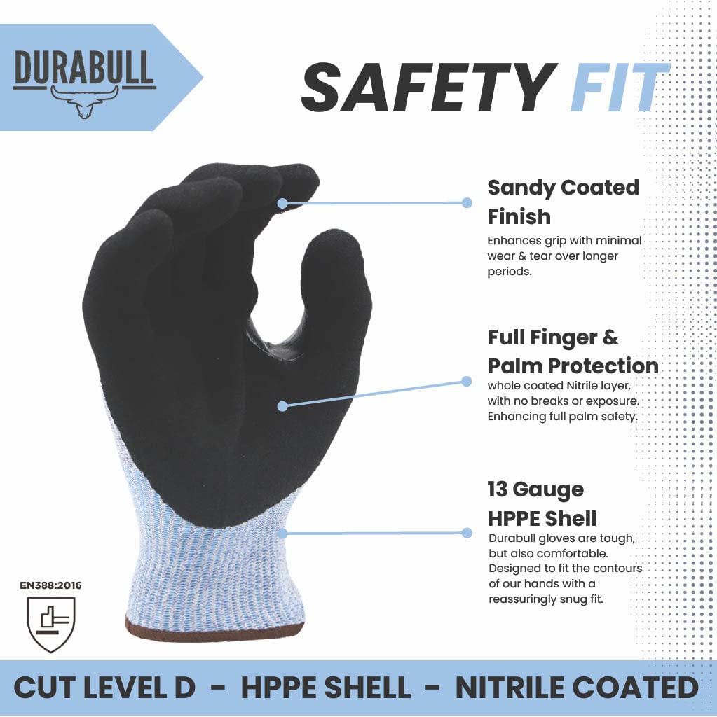 Cut Resistant Gloves: The Durabull Cut Resistant Work Gloves are designed to withstand the toughest conditions. Made from high-quality materials, these 13 Gauge HPPE Shell reusable gloves offer exceptional durability and longevity, ensuring they can handle any task you throw at them. The CT1780 model are the perfect, all round, multi purpose safety gloves for your general home improvement projects.