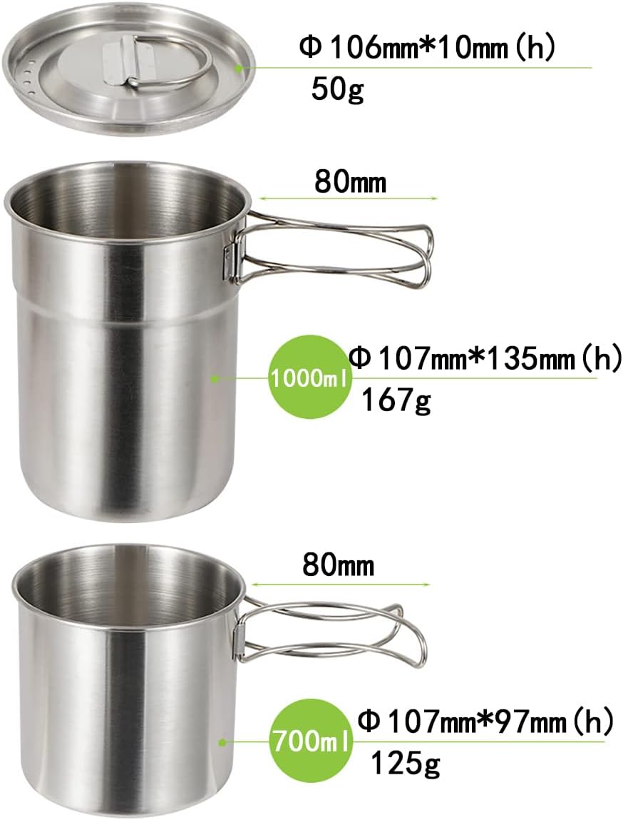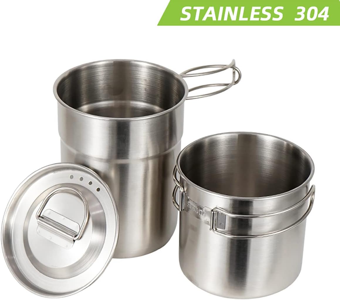 DZRZVD Camping Cups and Mugs Pot 2Pcs -304 Food Grade Stainless Steel – Outdoor Cookware Set with Vented Lid -33oz Big+24oz Small for Backpacking Picnic Hiking