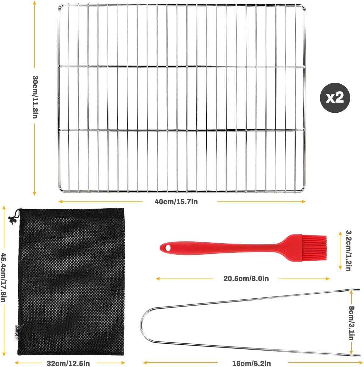 E-More Barbecue Grill Grates, 2 Pack Stainless Steel Cooking Grates BBQ Grill Rack with Grill Net Holder, Brush and Storage Bag for Outdoor Garden Camping Travel Hiking, 40x30cm