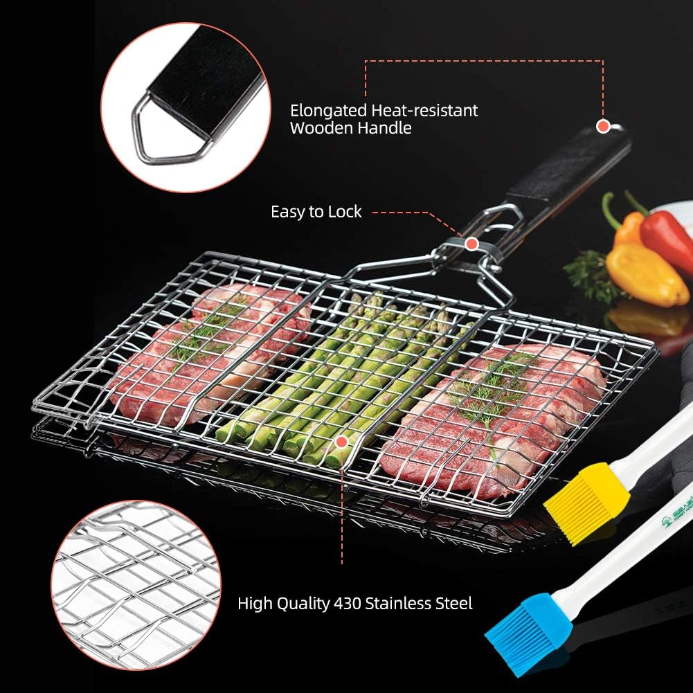 【Food-grade Material】- Made of durable 430 grade stainless steel, rust resistant and easy to clean. Thickened solid line design, not easy to bend and deform, this grill basket is reusable for a long time. Come with 2 high quality silicone barbecue brush, you don’t need to buy extra.