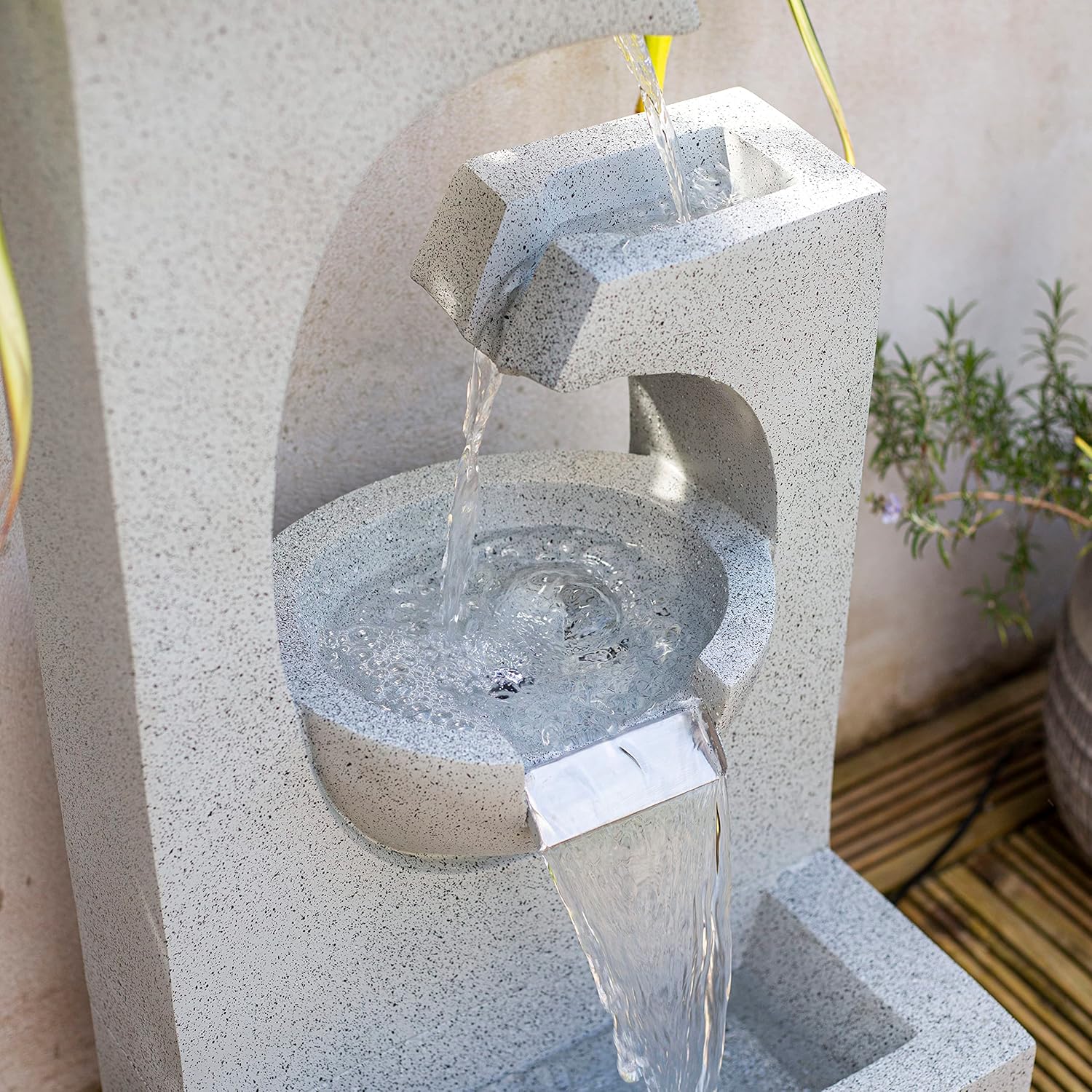 Self-contained fountain with recirculating pump included.