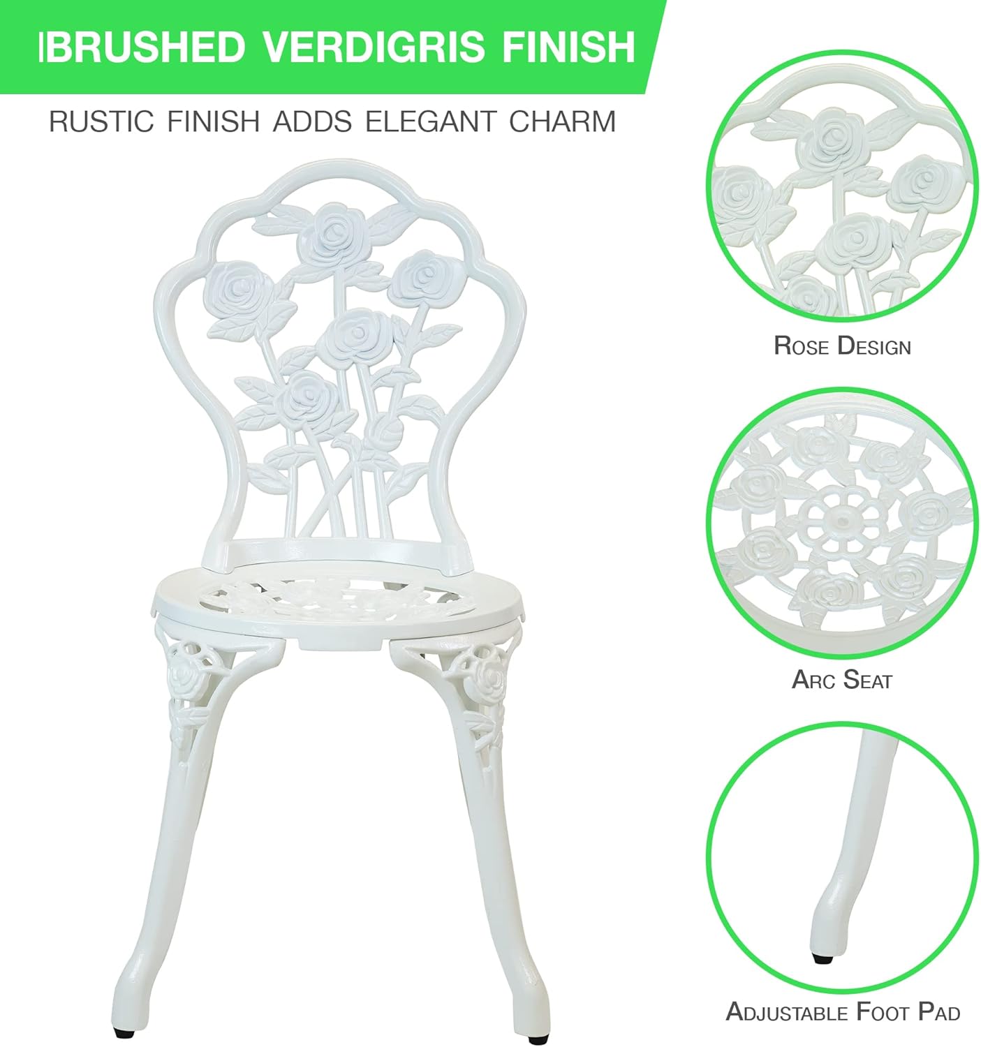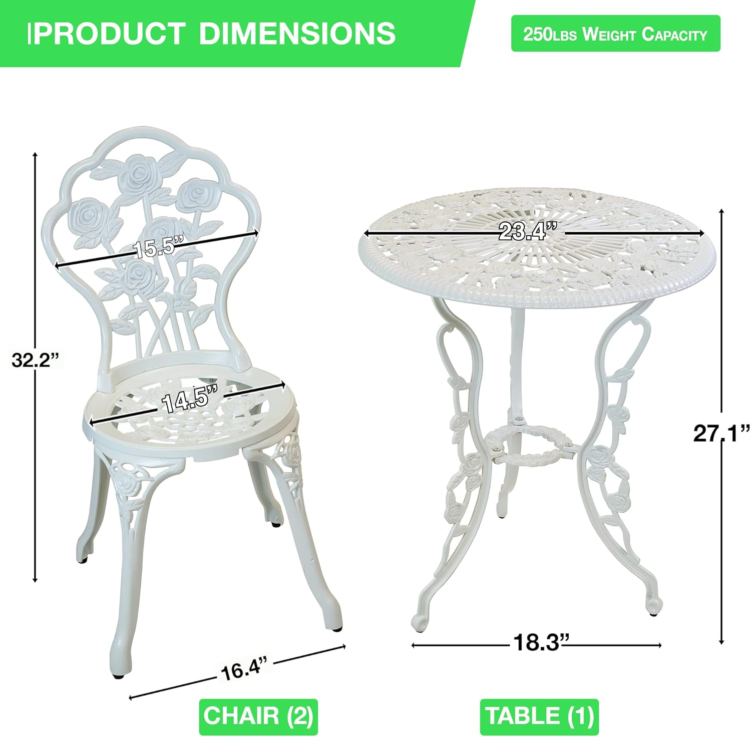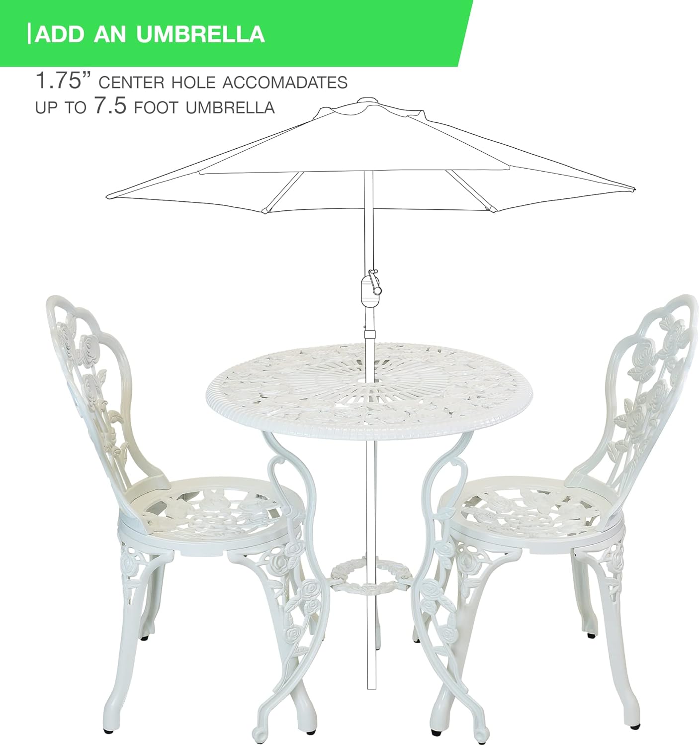 EdenBranch Garden Bistro Set, Iron and Aluminum Construction Patio Set, White Rose