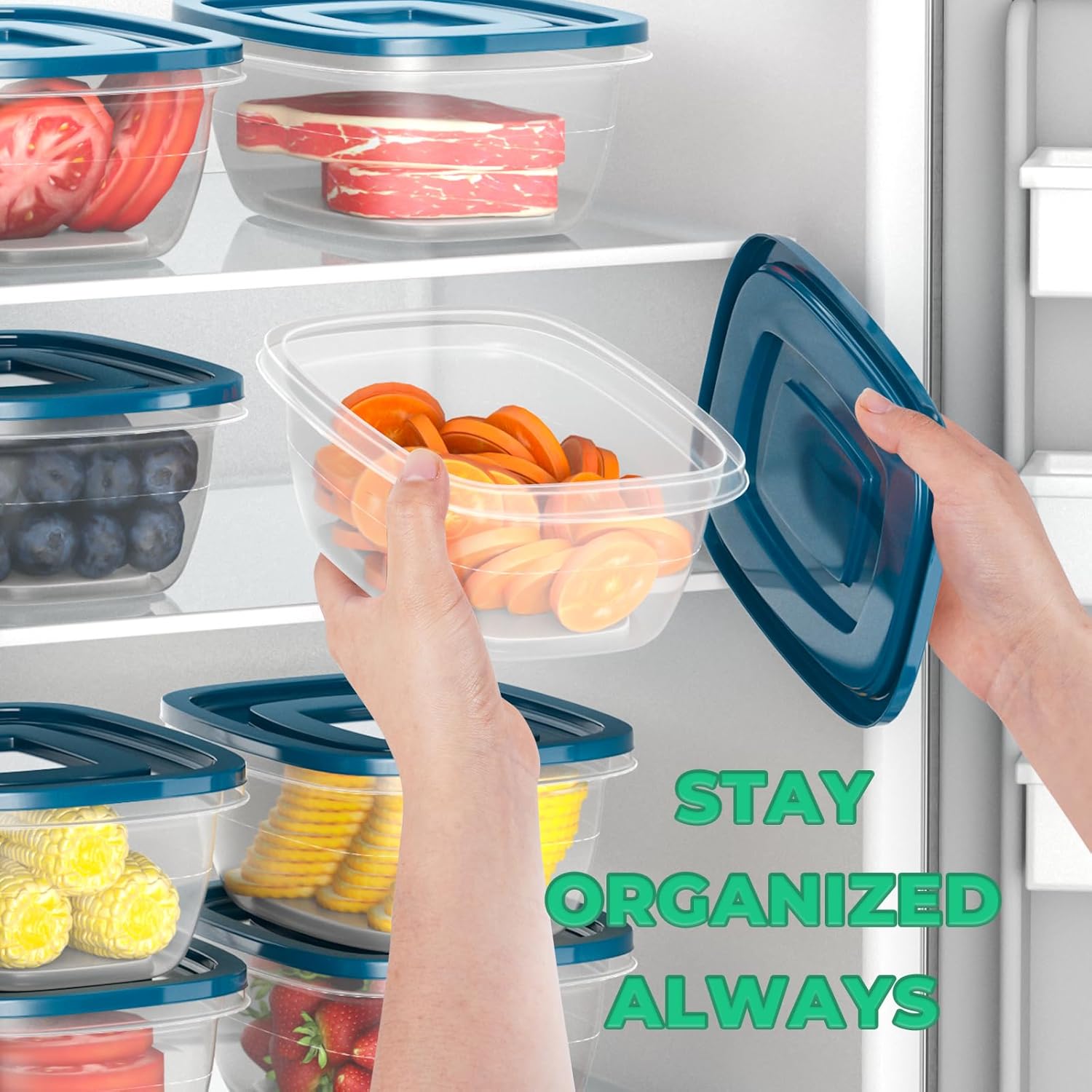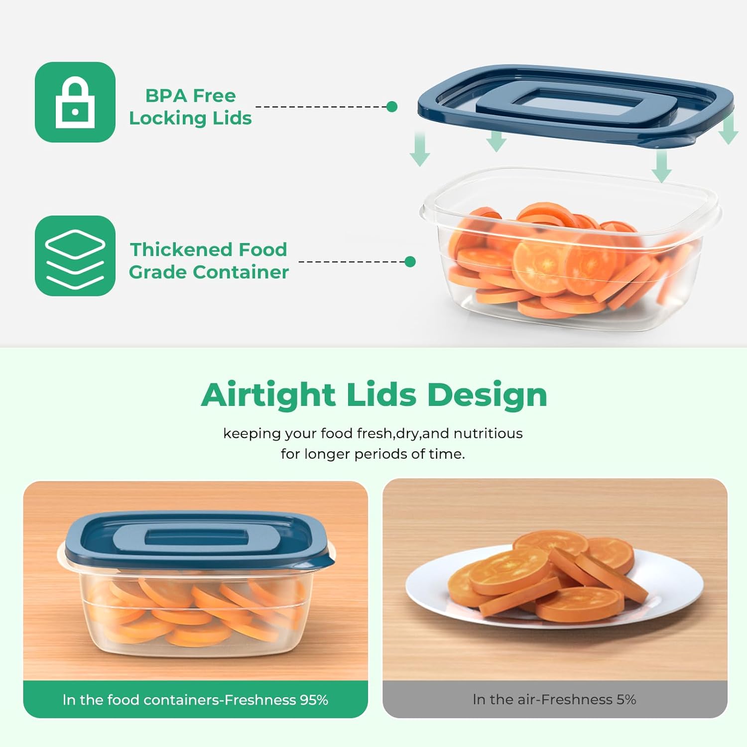 【Perfect Specifications】:Plastic container food storage set consists of 10 transparent plastic with blue lids.Each size:(7.68 x 5.51 x 2.83in, holding a generous 1.06 Quarts or 1000ML),which can meet your different needs,from storing fruits to preparing dishes.