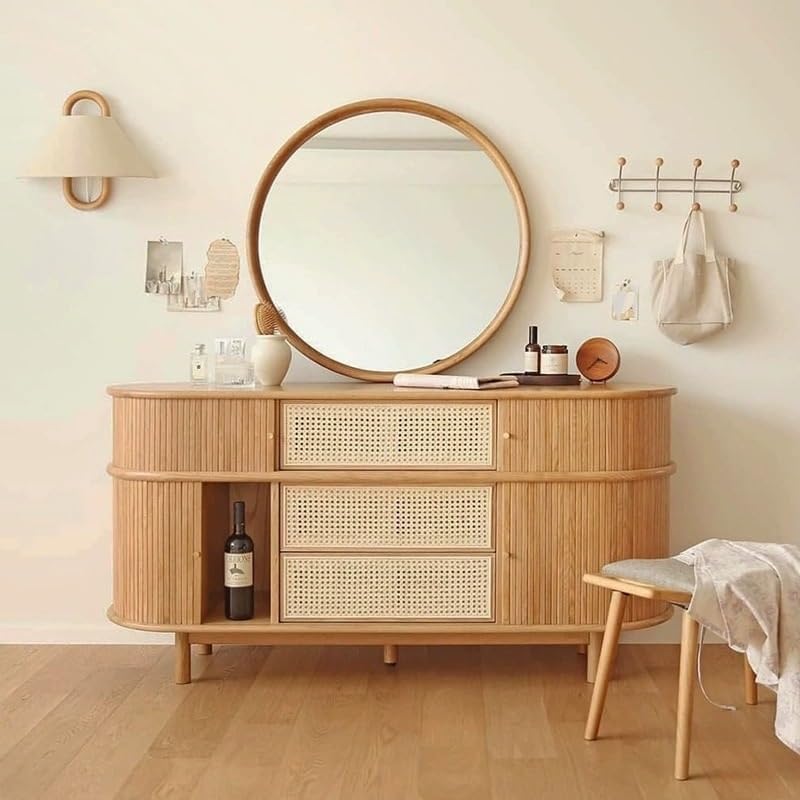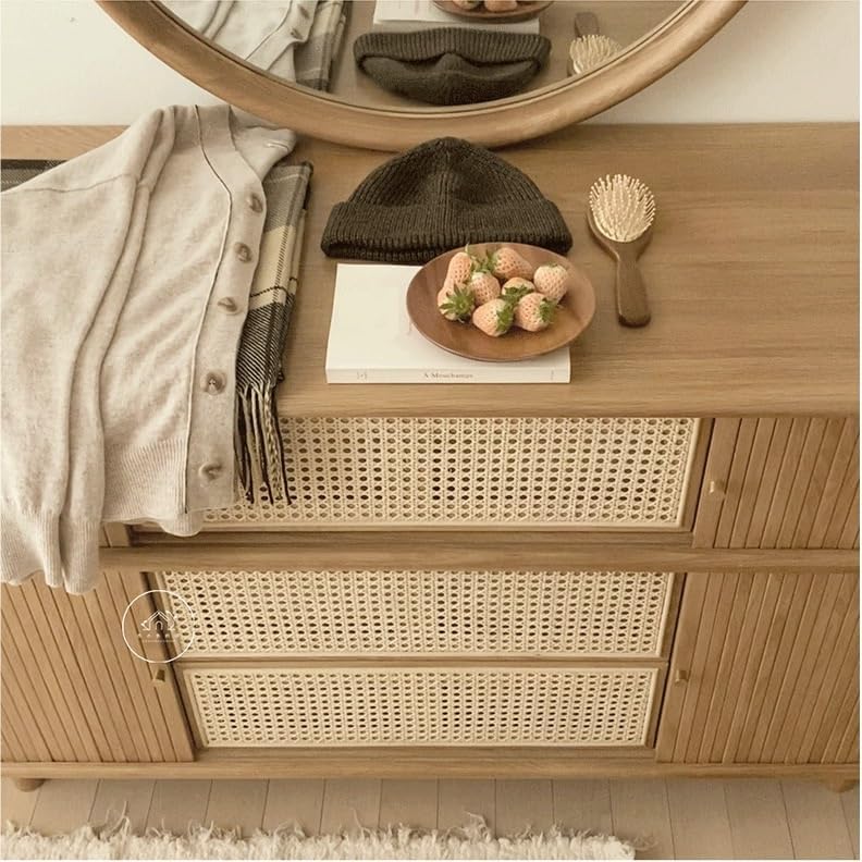 EINES Sideboard Buffet Cabinet Rattan Sideboard Household Retro Entrance Cabinet Household Living Room Side Cabinet Drawer Storage Cabinet Kitchen Buffet Storage Cabinet