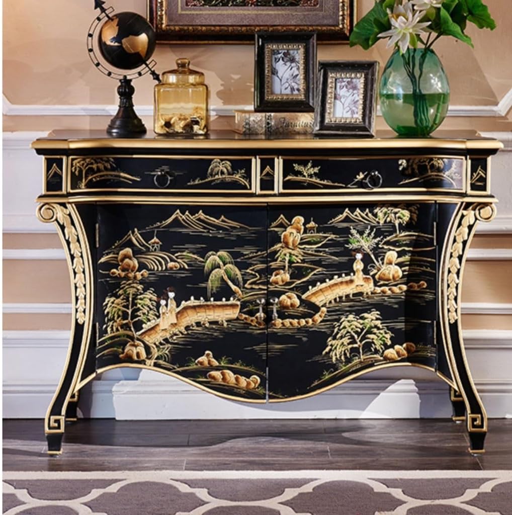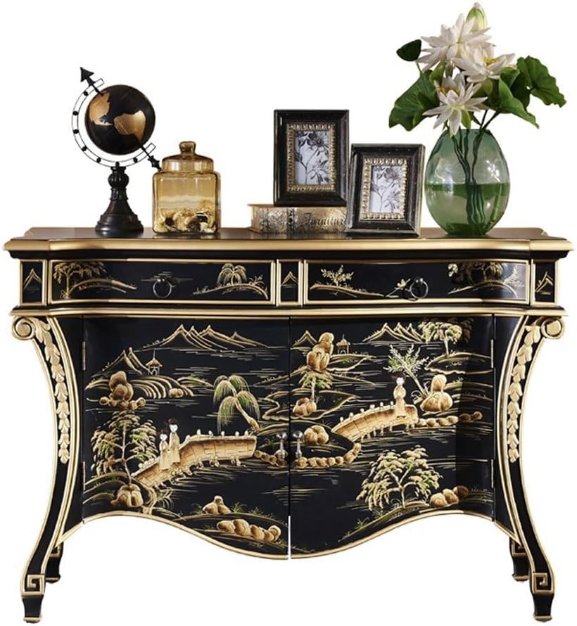 EINES Sideboard Buffet Cabinet Solid Wood Entrance Cabinet Hand-painted Living Room Light Luxury Sofa Dining Sideboard Classical Corridor Decoration Cabinet Kitchen Buffet Storage Cabinet