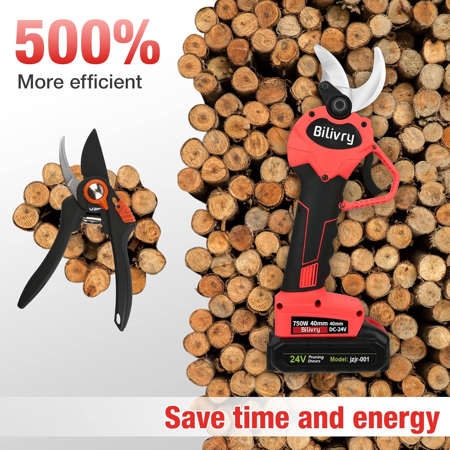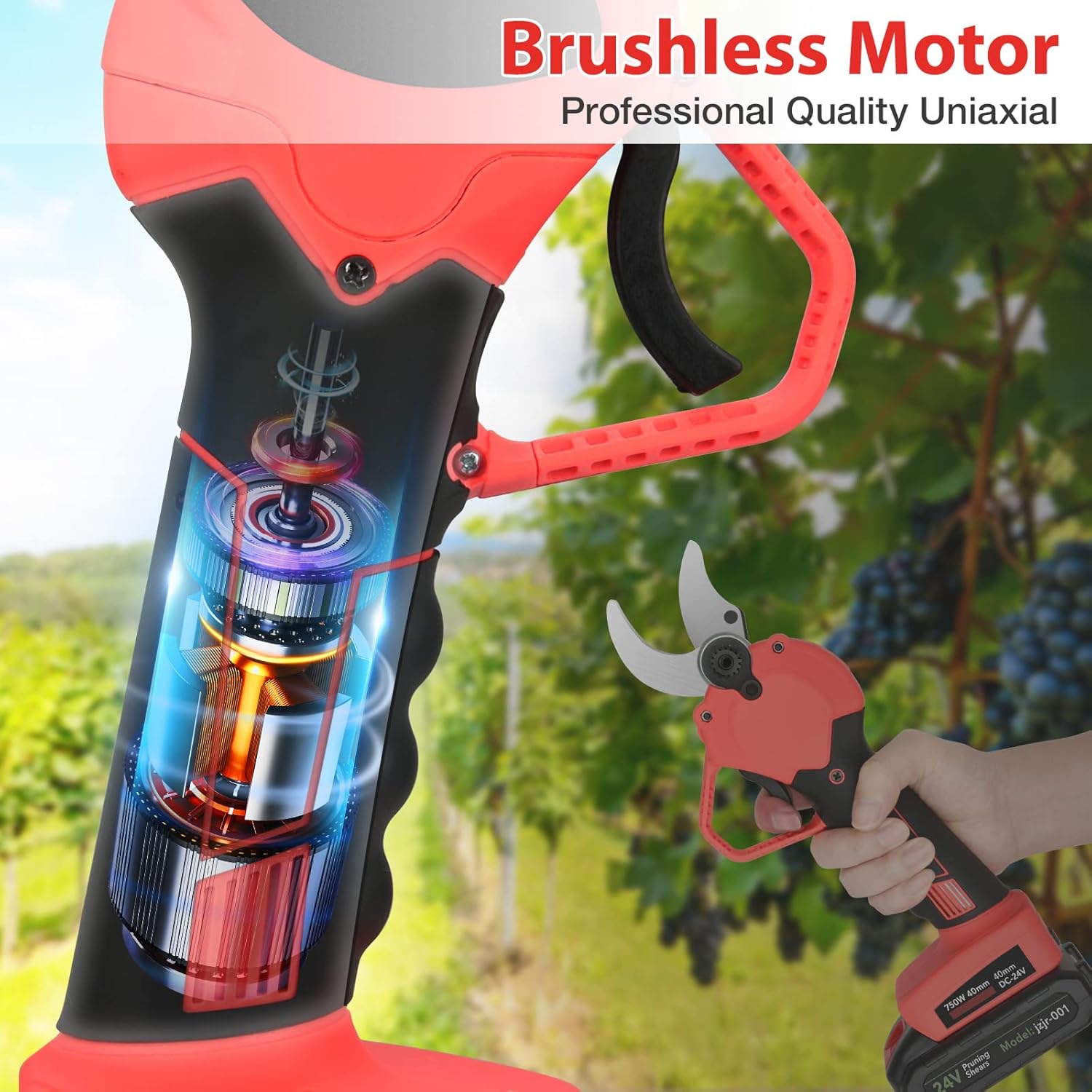 Up to 40mm Cuts : The Electric Pruning Shears offers up to 40mm cuts, effortlessly handling thicker branches and stems. With a powerful brushless motor and sharp blades, it ensures clean, precise cuts, promoting healthy plant growth and reducing infection risk.