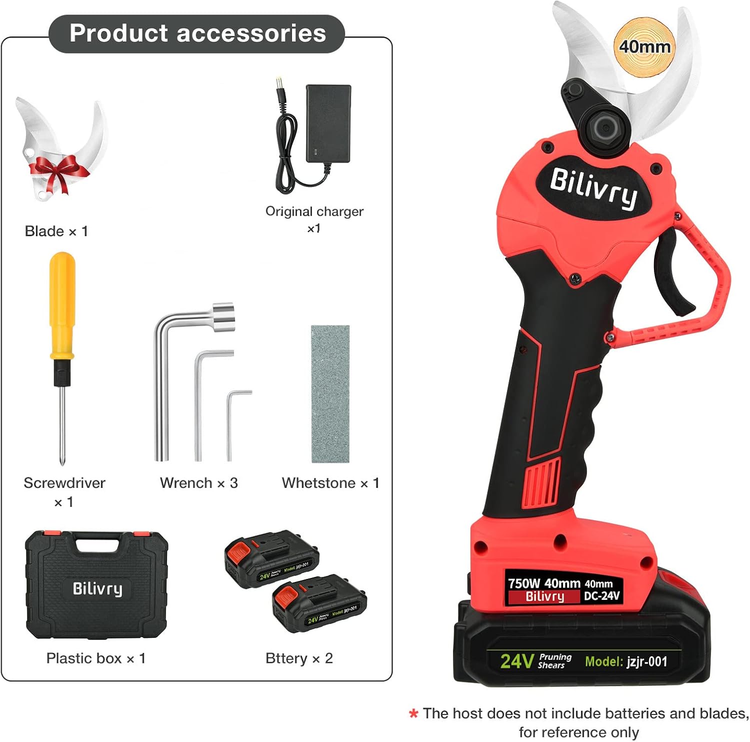 After-sales service: The main body of the electric scissors is guaranteed for 12 months, and the battery is free for 6 months. Package Contents: 1 Cordless Electric Scissors, 2 x 3000mAh Battery, 1 Wrench, 2 Blades, 2 Wrench, 1 Screwdriver, 1 Charging Adapter, 1 User Manual, 1 Storage Bag.