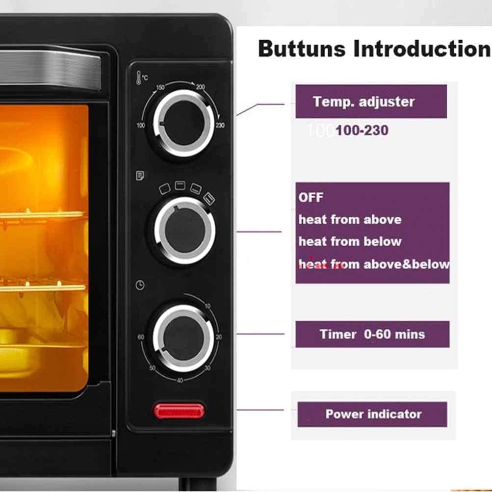 MULTI-FUNCTION KNOB CONTROL PANEL:Accurate temperature control to meet various baking needs. Control the temperature in the upper and lower pipes to avoid half-cooked food