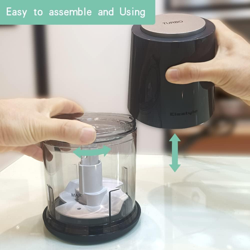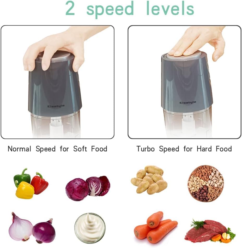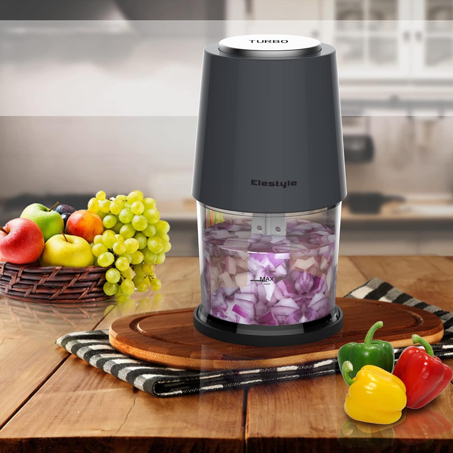 ELESTYLE Mini Chopper, Vegetable Chopper Electric, Meat Grinder, Multi-Function 2 Speed Food Chopper with Non-Slip Base, 0.5L Container, Food Processor Suitable for Meat, Vegetable, Fruit, 260W