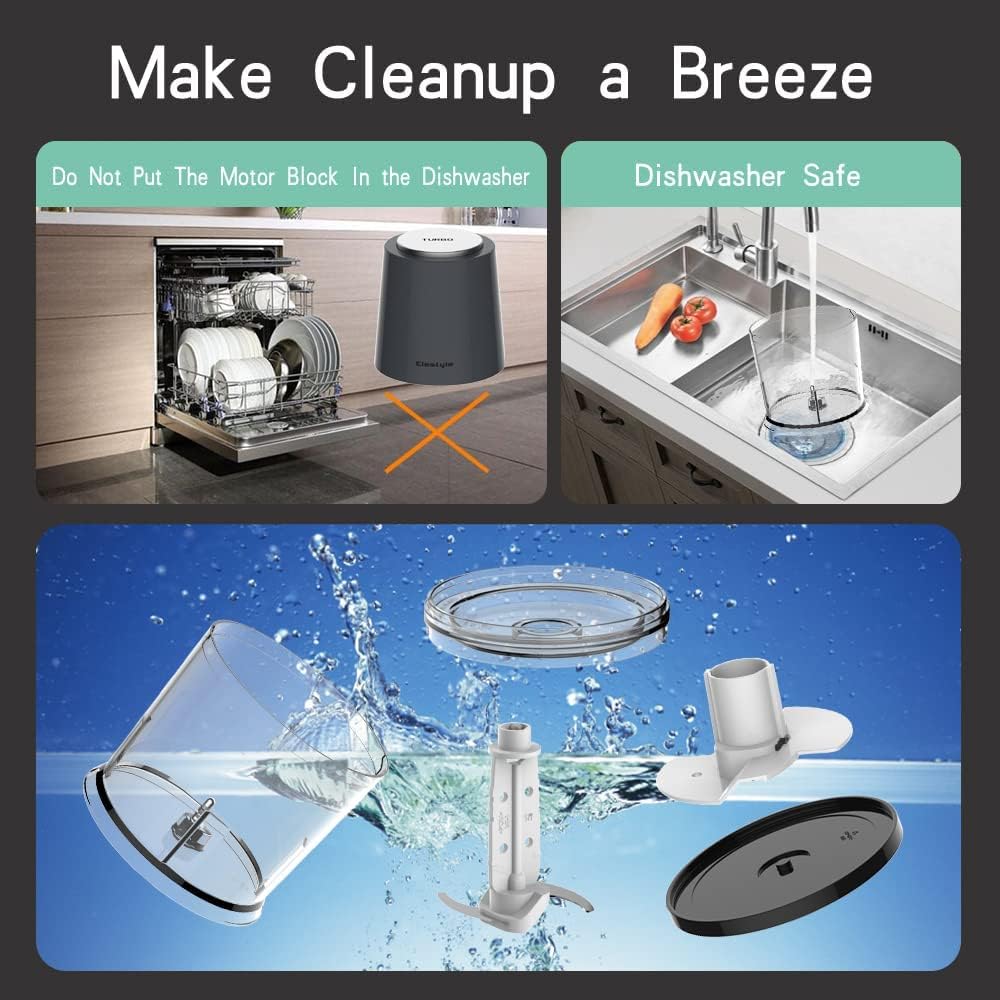 【Easy to use and clean】Just press the top button to start shredding. All detachable parts are dishwasher safe or easy to clean manually. The lid, bowl and blade can be washed in the dishwasher. Note: When the meat grinder works, press the engine with both hands to avoid splashing.Do not immerse the engine in water!