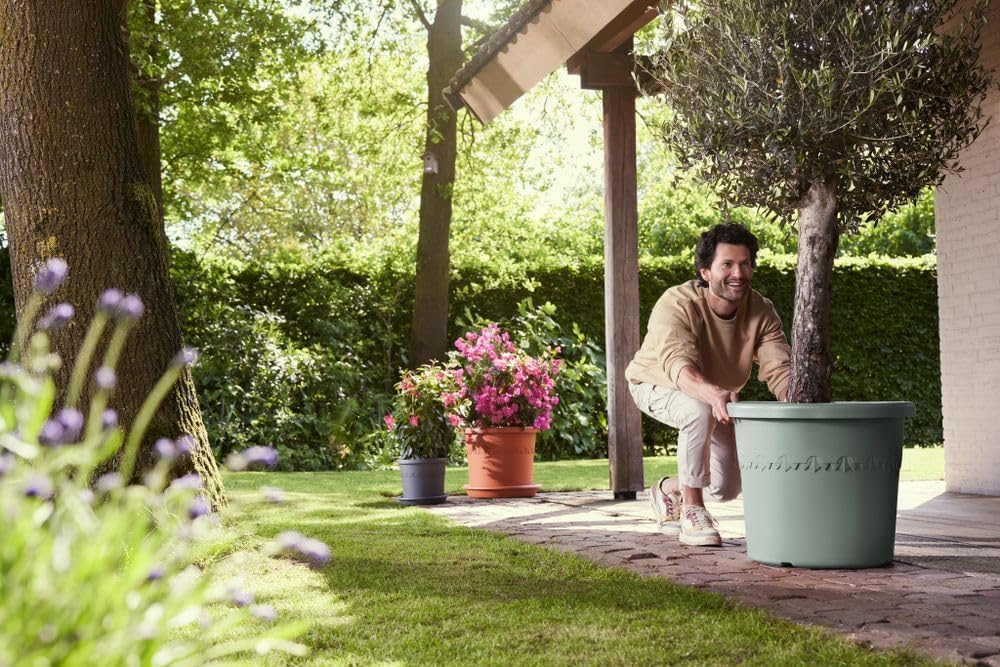Put your prettiest plants centre stage with this timeless classic, the Algarve collection from elho. Create your own Mediterranean atmosphere at home in your garden or on your balcony with these large outdoor planters. They come in a range of attractive matte colours and feature a decorative flower motif. Move your plants easily to the best spot on your patio and rearrange them whenever you like, thanks to the handy wheels on this large, round flower pot. A specially designed base raises the pot off the ground to provide optimal drainage and aeration to help your plants thrive so you can enjoy them for longer. This plastic flower pot is also made from top-quality materials, so you can use it season after season. You can be sure that this flower pot has been made with love for nature, it is made from 100% recycled materials, is 100% recyclable and is produced with wind energy. It’s a keeper! These flower pots are made from high-quality, 100% recycled plastic, so they can take a knock or two. The pots are frost resistant, and the colours will not fade, so you can fill your garden or patio with beautiful green plants, no matter the season. Always fits Prevent your plant pots from leaving those unattractive rings on your patio with a plant pot saucer. A matching saucer is available for every pot. Easy to move This plastic flower pot is easy to move, thanks to cleverly hidden wheels. Ideal when you want to create a little extra space or completely rearrange your patio.