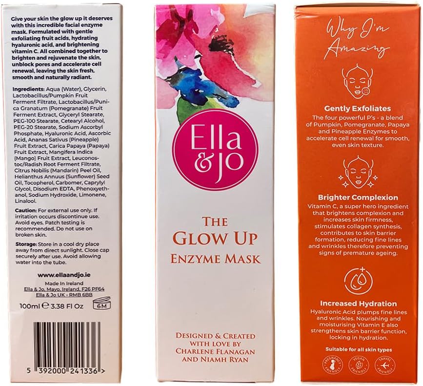 Ella & Jo Glow Up Enzyme Face Mask, Hydrating Hyaluronic Acid + Brightening Vitamin C + Exfoliating Fruit Extracts, Gentle Exfoliator, Unblock Pores, Evens Skin Tone, Reduces Fine Lines, Vegan