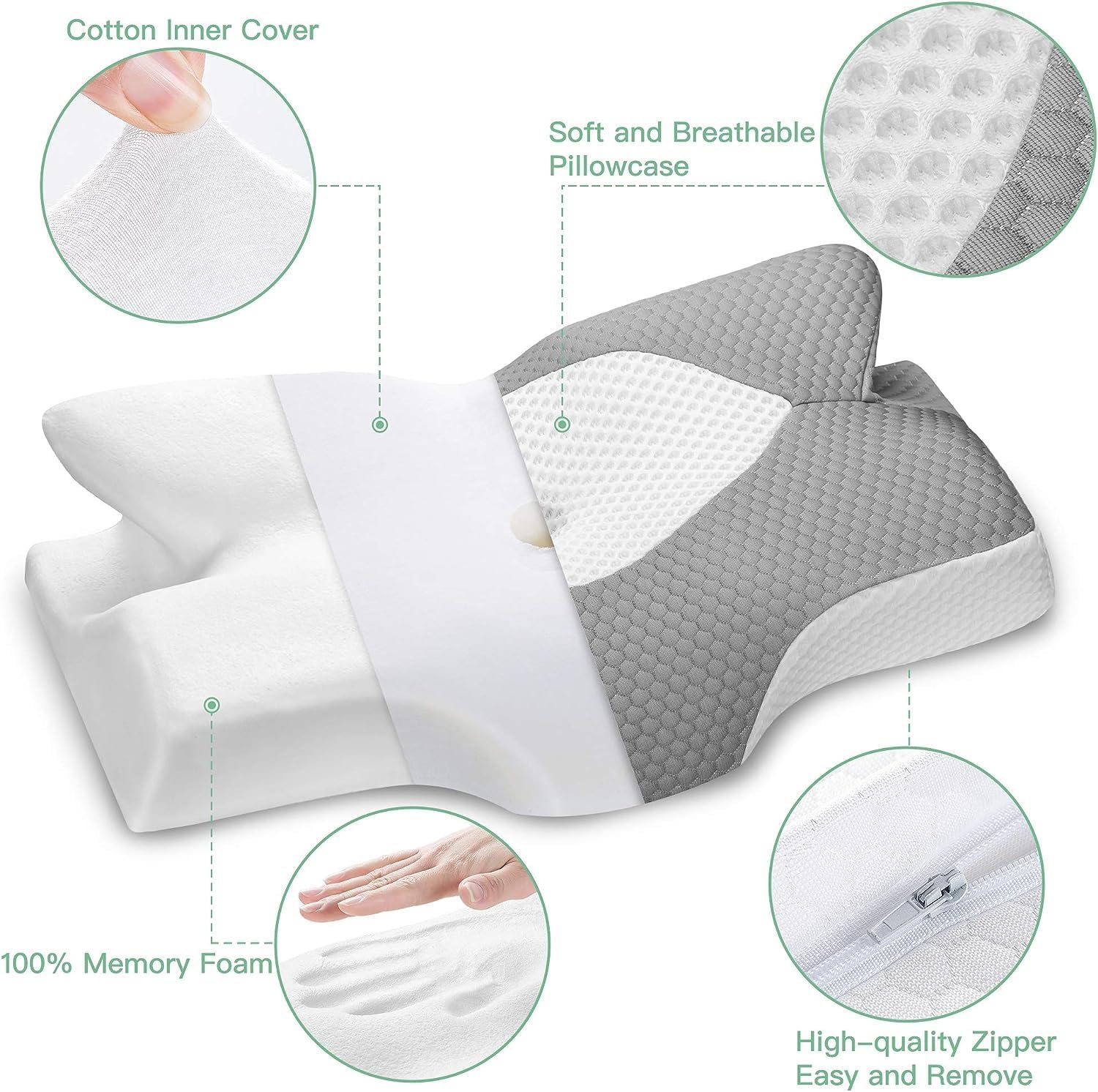 🌙REMOVABLE BREATHABLE PILLOWCASE: The Made of 100% Polyester. A breathable surface lets air circulate to keep the pillow cool while you sleep. It is removable with zippered and machine washable, so you can always keep it clean and smelling fresh. All material is chemical-free for better health.