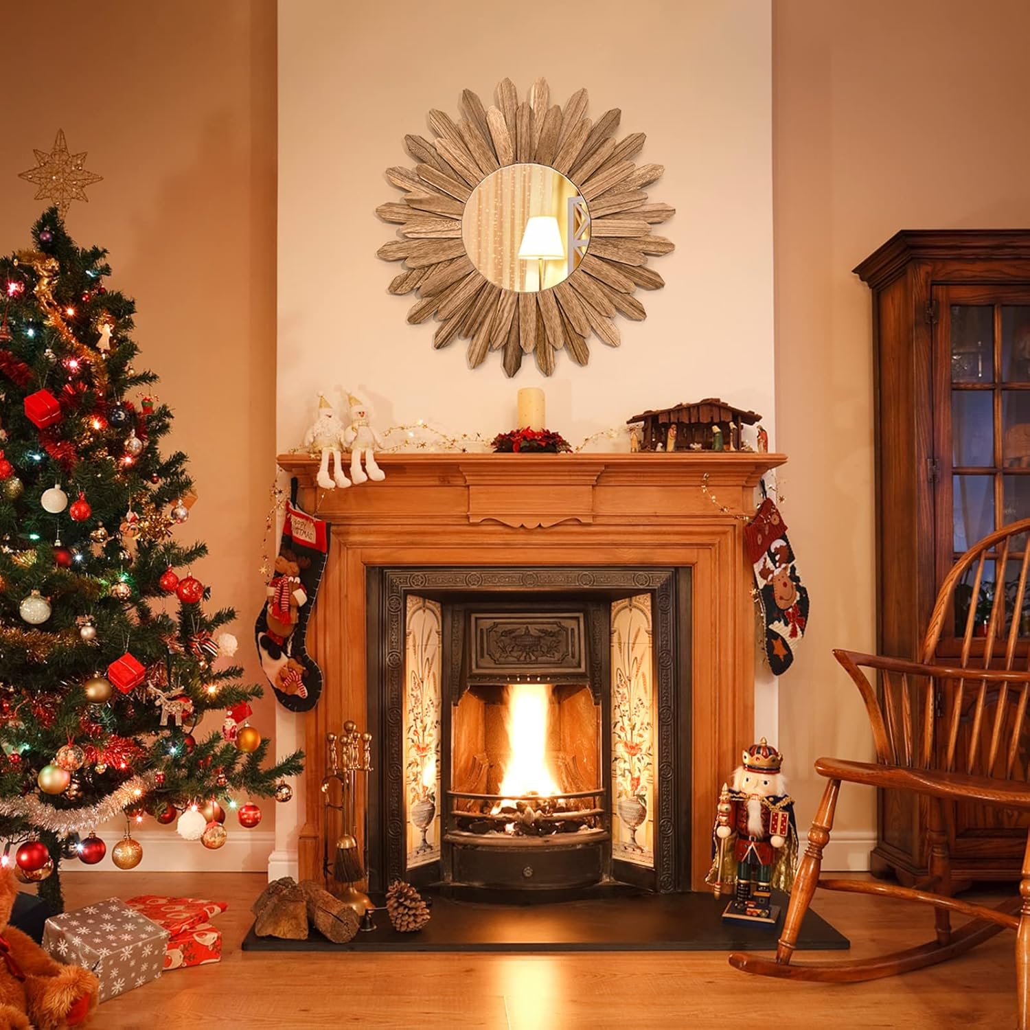Boho Wall Decor Mirror: The mirror wall decor consist of wooden sunburst frame and round mirror to make a bohemian style mirror, can combine with other decoration style, is perfect aesthetic wall decor for bedroom, living room, fireplace, hallway, lounge, entryway.