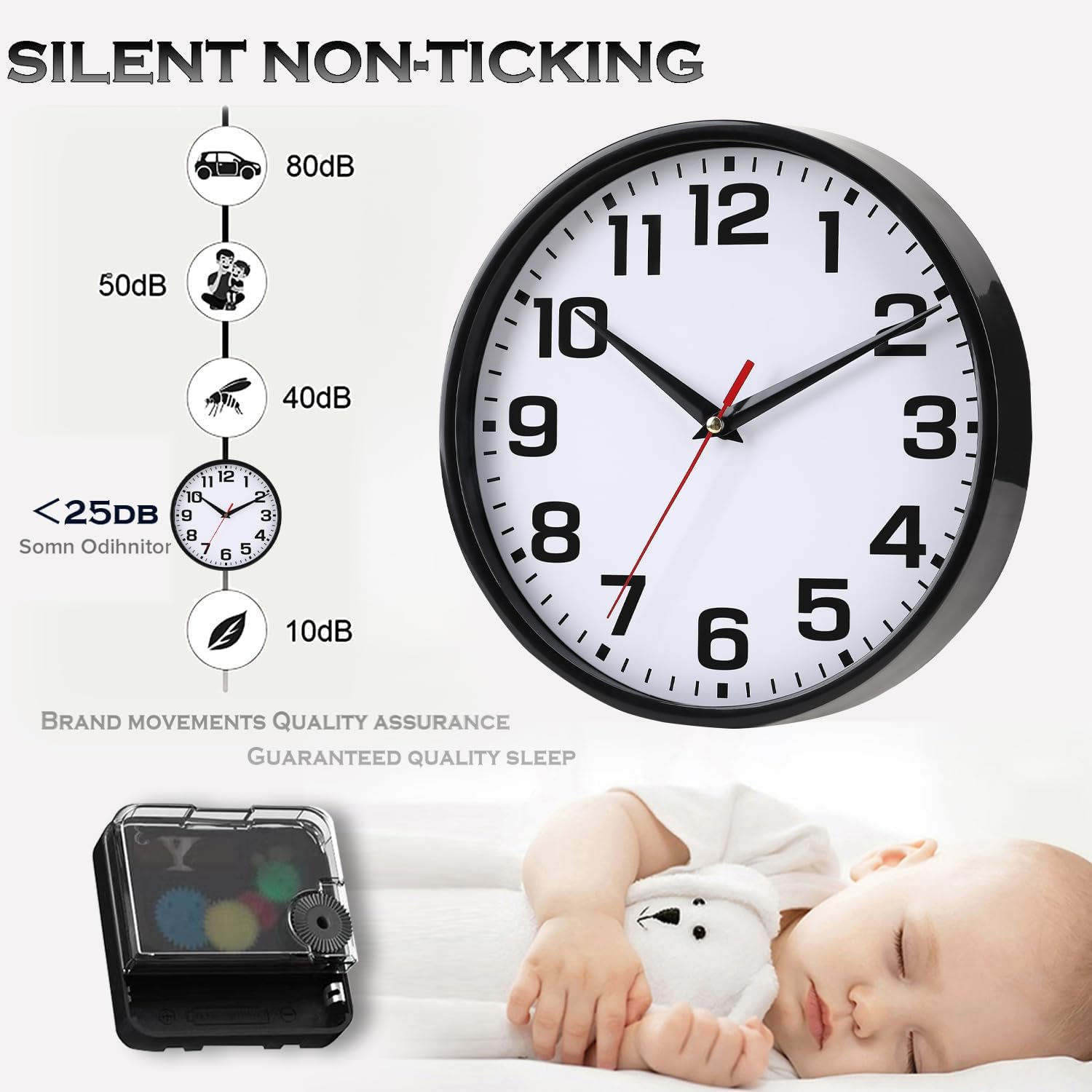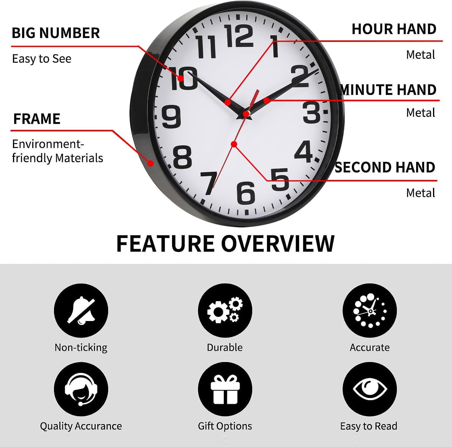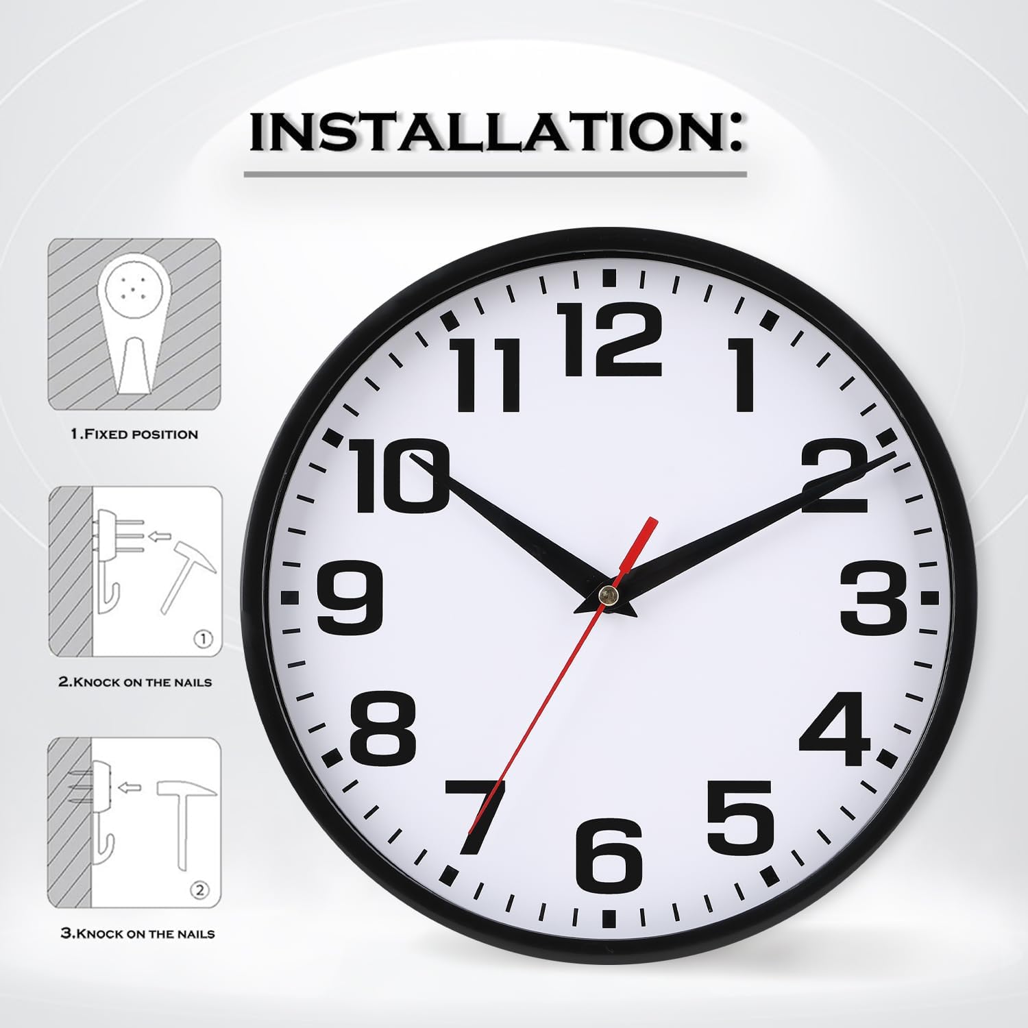 High Quality Wall Clock – The newest black wall clock frame environmental engineering plastic, non-toxic and safer; metal pointer is used and copper sleeve is added for reinforcement, which is more closely combined with the movement.