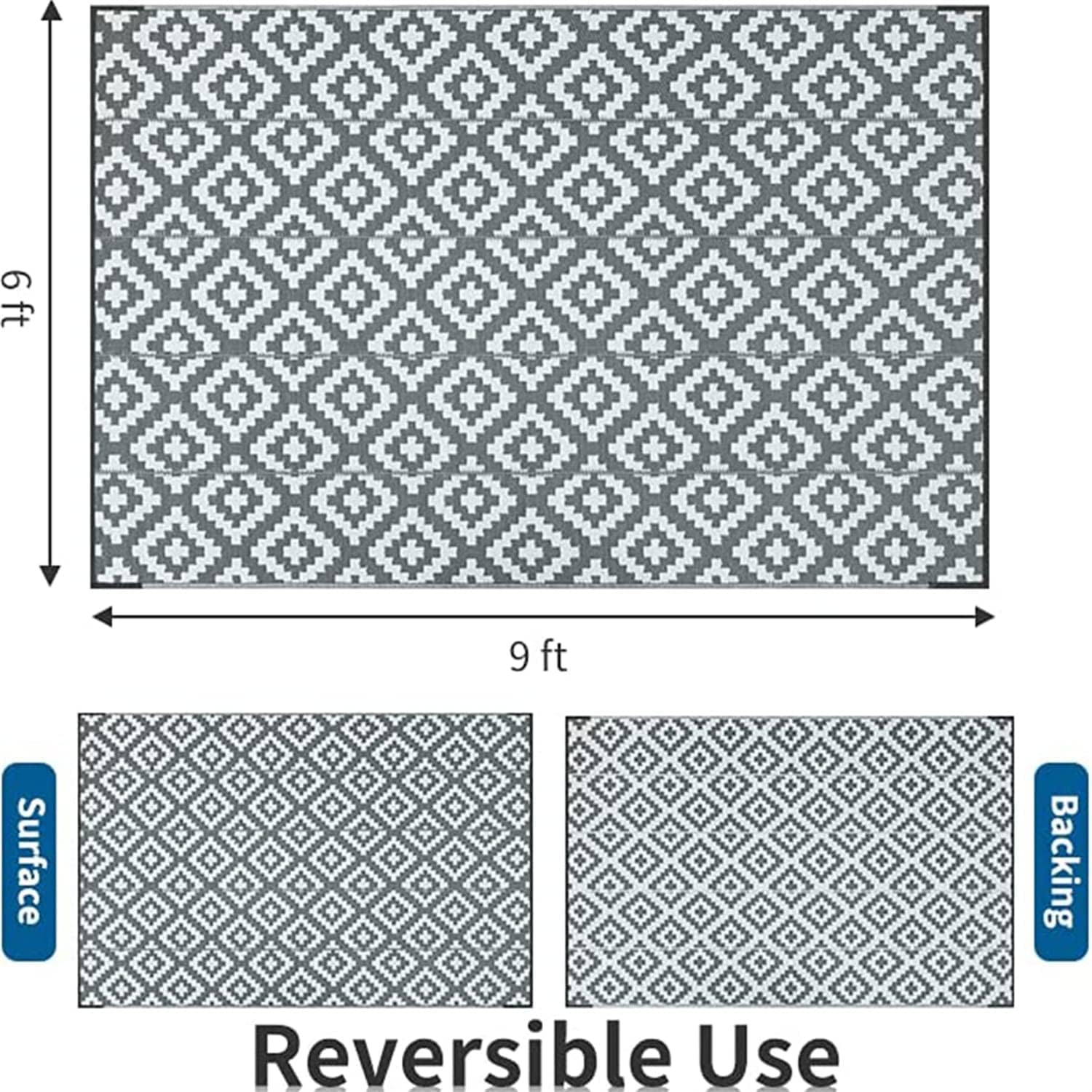 Enipate Geometric Outdoor Rugs for Patios Clearance, 182 x 274cm(6x9ft) Reversible & Easy Cleaning Patio Decking Rug, Portable Comfortable Woven Garden Carpet