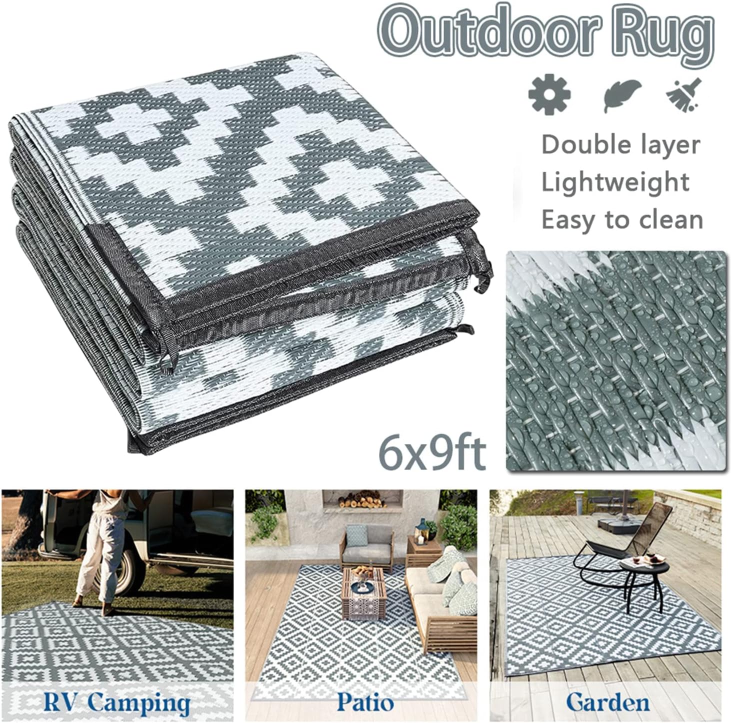 FOLDABLE AND PORTABLE Due to the light weight and seams in the middle, you can freely fold or unfold the indoor outdoor rug into an ideal shape for easily carrying and storing when not in use. Saving more time to enjoy yourselves. Flexible to be used indoors or out, covering picnic, patio, garden, garage, beach etc.