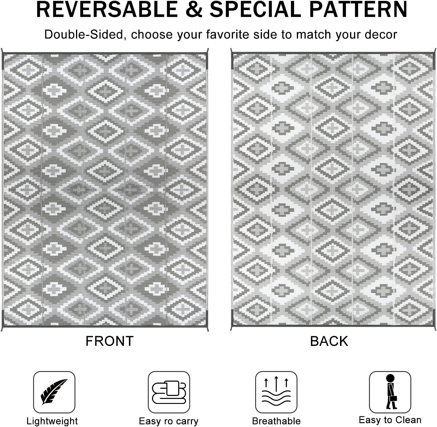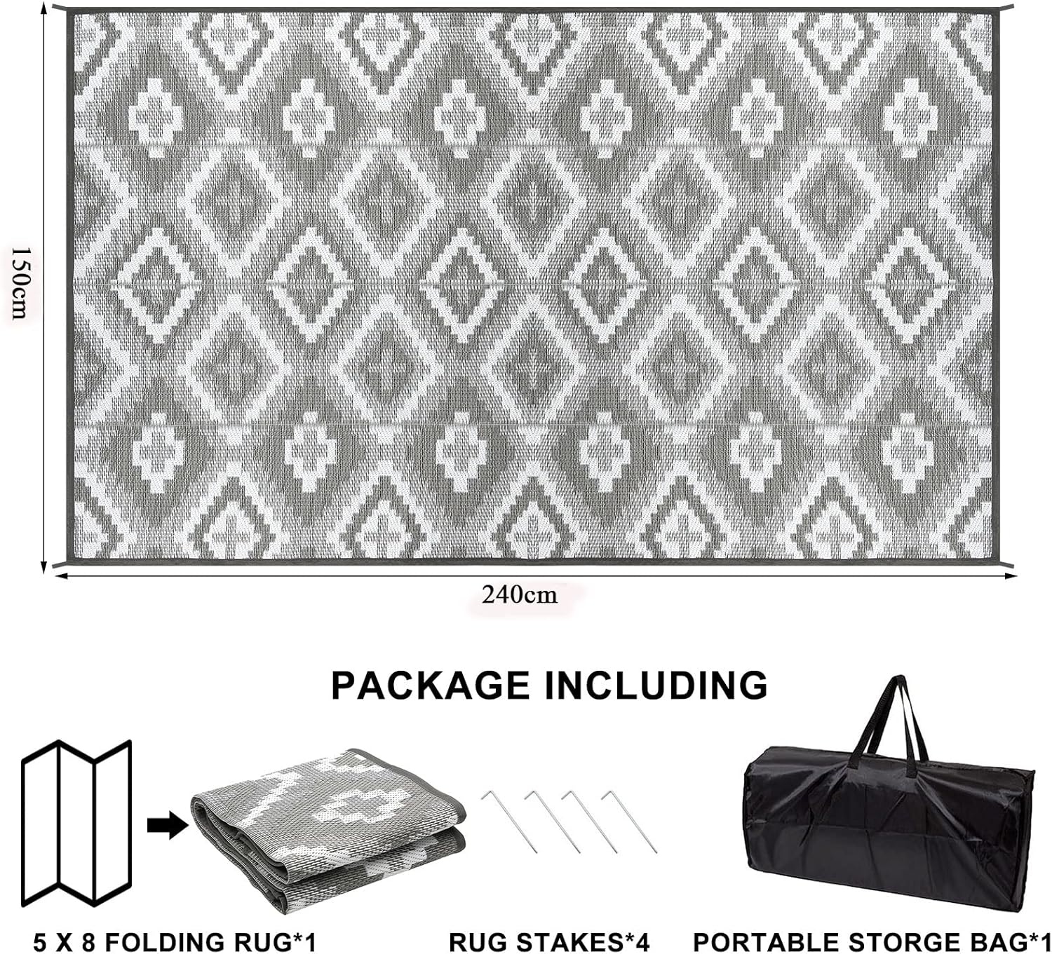 【Easy Cleaning & UV Fade Resistant】:The garden rug is easy to be cleaned, simply spray with a hose or sweep away dirt with water and airing it dry. Not accumulation water and easy to dry. UV coated design totally prevents the damages from ultraviolet and high temperature. But do not leave in direct sunlight for extended periods, use it in the shade to make the camping rug more durable.