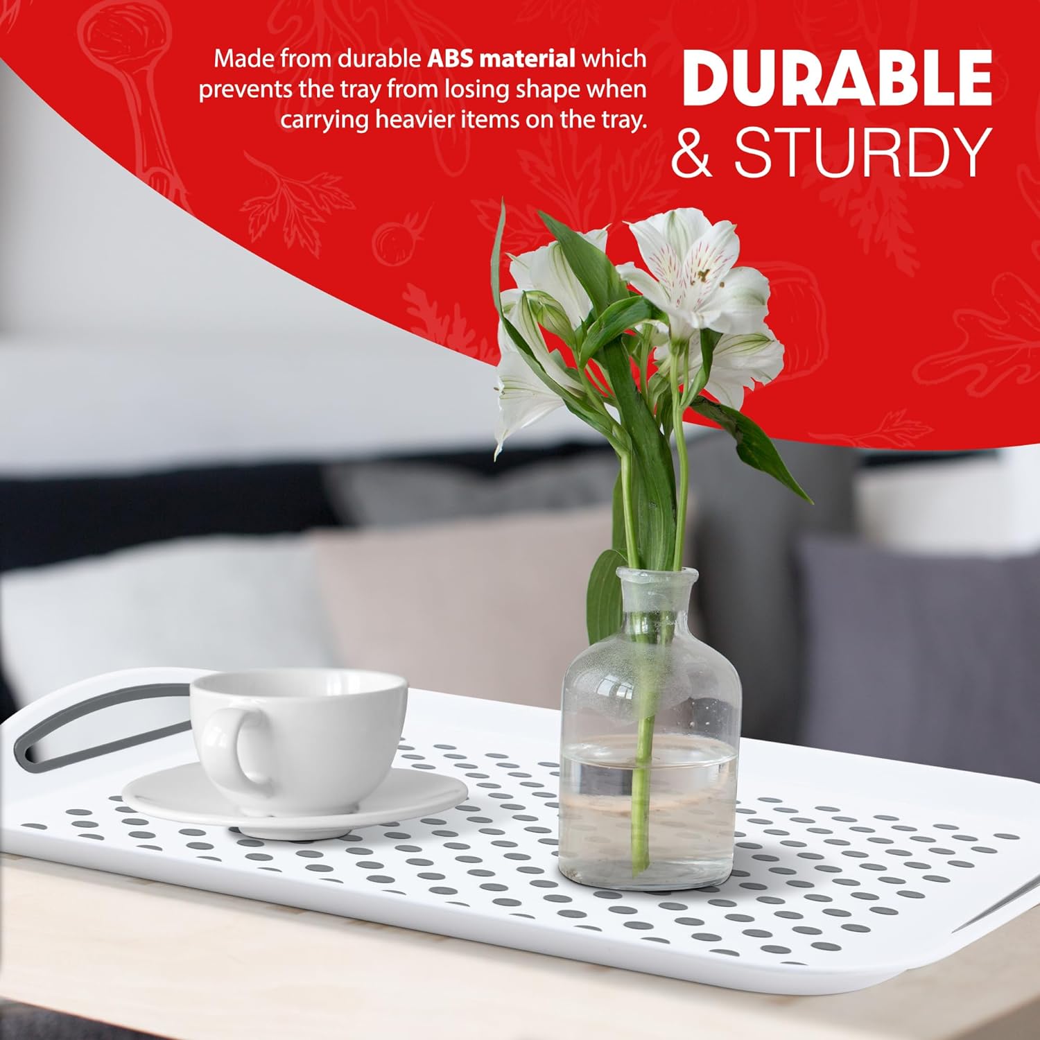 Essen 2-Pack Serving Tray Set – Non-Slip Lap Boards with Grip Handles, Ideal for Food Prep, Tea, Breakfast in Bed – Plastic Tray for Stable Dining – Dishwasher Safe (Grey/White)