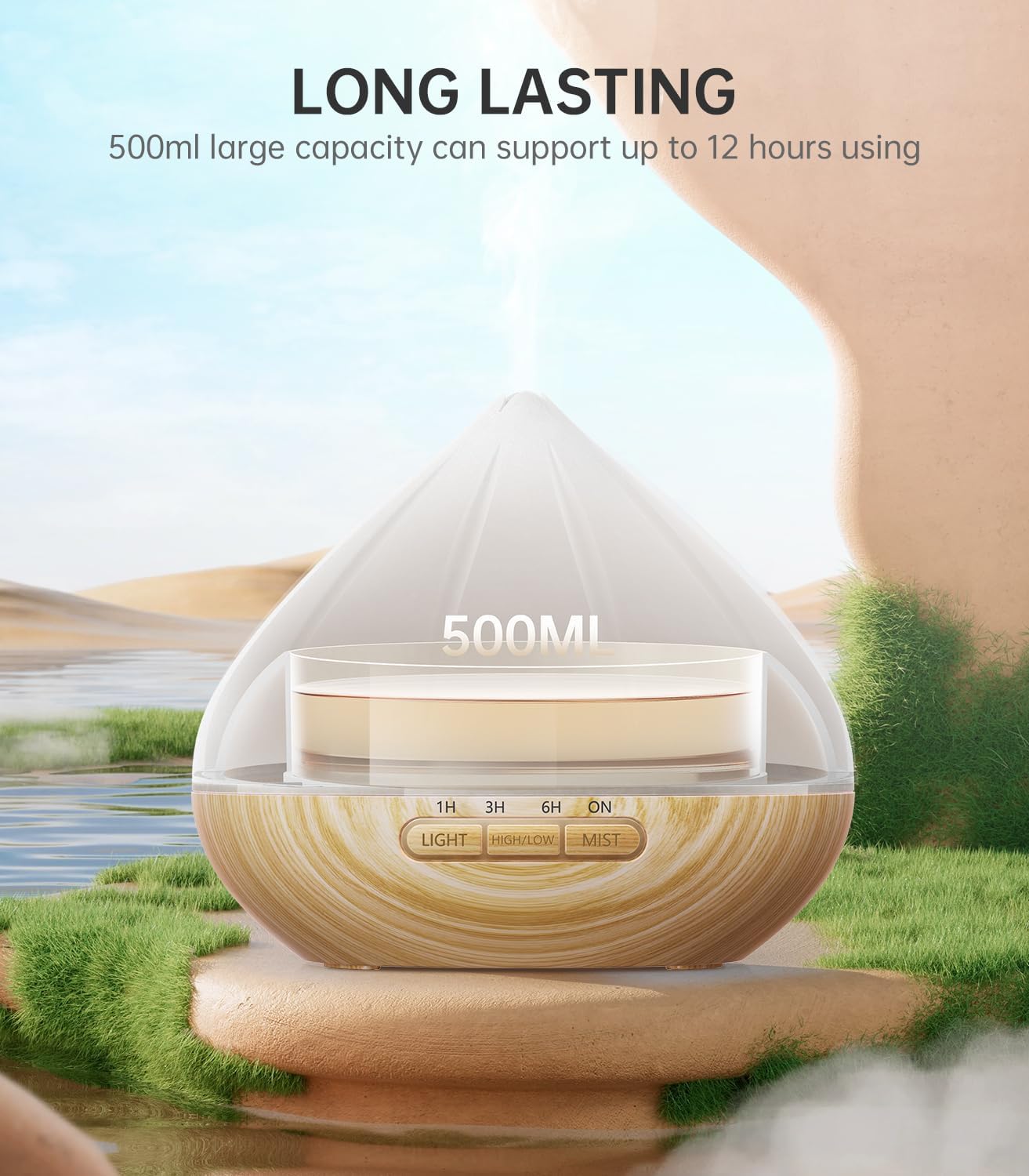 ✿ LONG LASTING – The capacity of our aromatherapy diffuser is up to 500ml, which is enough to support your use all night long. You don’t have to think about getting up to add water while you’re sleeping.