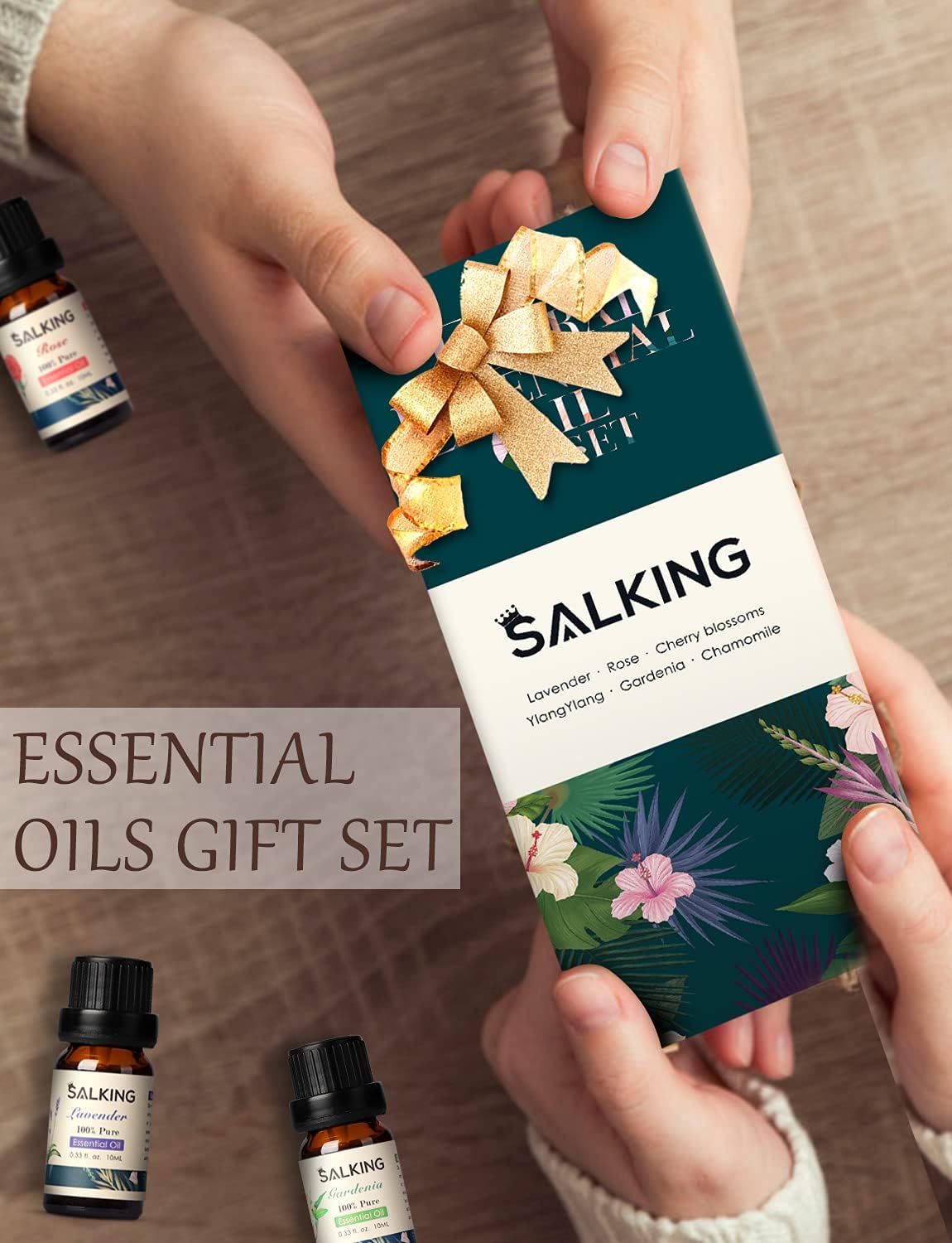 Essential Oils Gift Set, SALKING 100% Pure Aromatherapy Therapeutic Grade Scented Oils for Oil Diffusers,6 x 10 ml(Lavender, Rose, Cherry Blossom,Ylang Ylang,Gardenia,Chamomile)