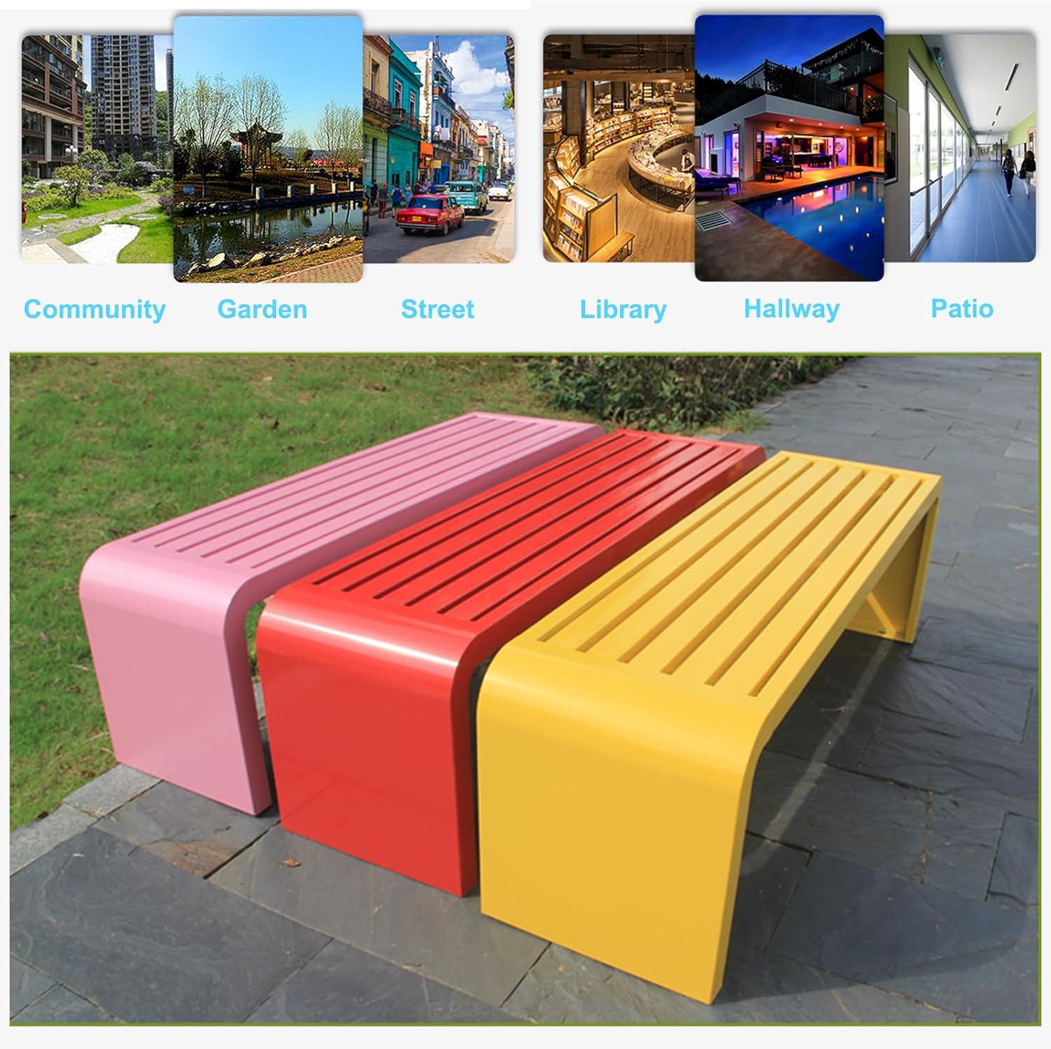 [LONG-LASTING BEAUTY AND DURABILITY] – The colored coating is a high-temperature sprayed plastic that is rust-proof, waterproof, no color loss. Decorate your patio beautifully, Please don’t worry the edge of the park bench is smooth and won’t be scratched, the outdoor bench will not rust and is perfect for years of use.