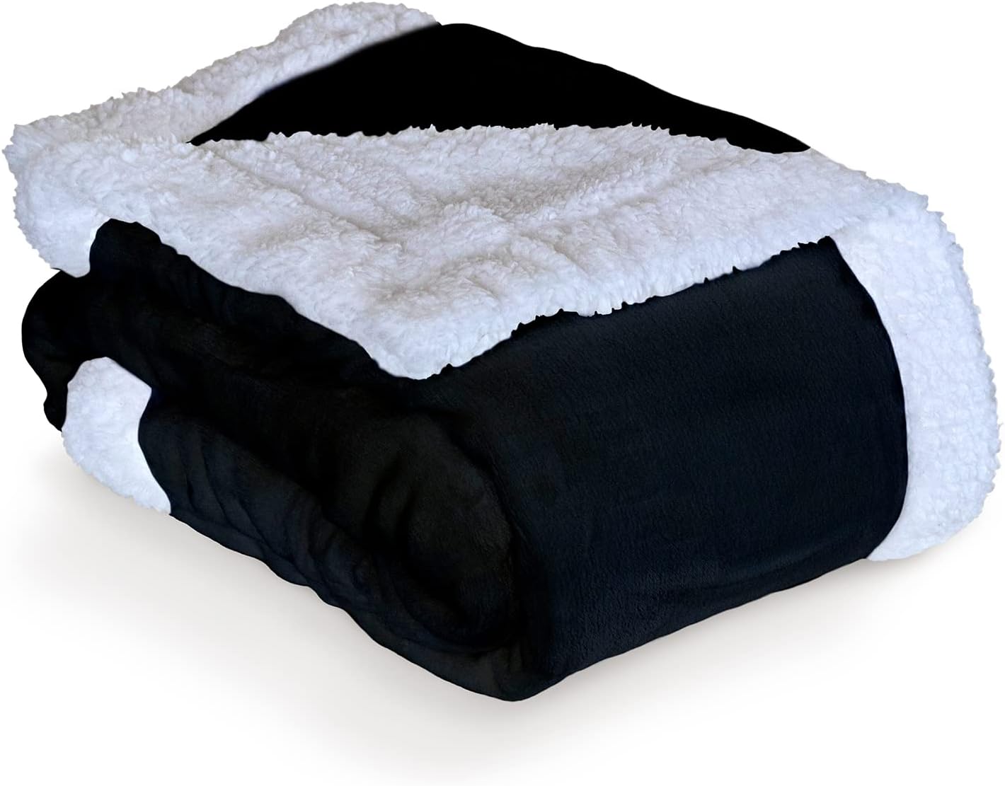 ✌️ Reversible Soft Throw Blanket, 2 Looks in 1: One side features thick, ultra plush sherpa, while the other is made with velvety soft, black fleece. Versatile, you can use the black throw blanket year round, indoors and outdoors. Simply use the lighter fleece side in spring and summer and the fluffy, extra warm side in fall and winter