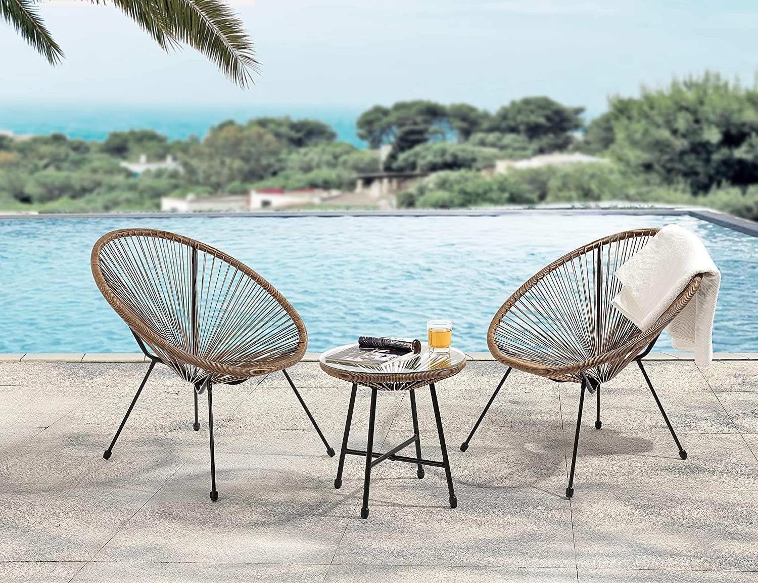 EVRE Goa Natural Acapulco Styled Egg Shape Conversational Garden Furniture Bistro Patio Outdoor Set For Balconies Gardens Terraces 2 Chairs 1 Glass Top Table