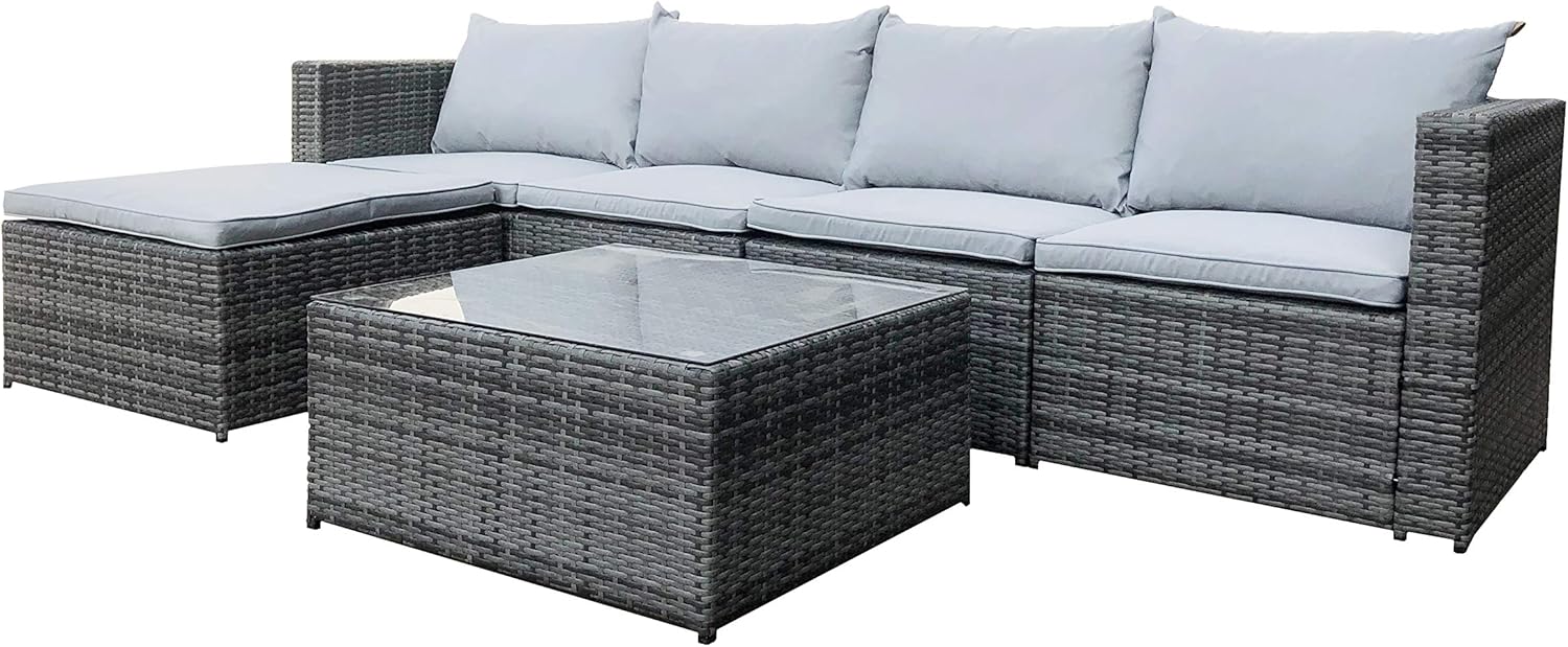 EVRE Rattan Outdoor Garden Furniture Set Grey MIAMI Sofa, Coffee Table, Foot Stool Rattan