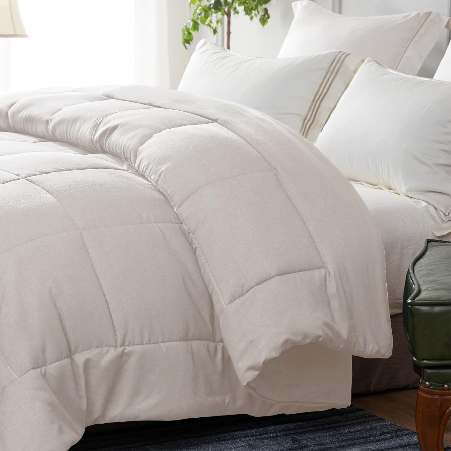 Exclusivo Mezcla 6 Tog Single Size Down Alternative Duvet Quilted Duvet Insert with Corner Tabs for All Seasons – Breathable, Lightweight and Machine Washable (135x200CM, Beige Bone)