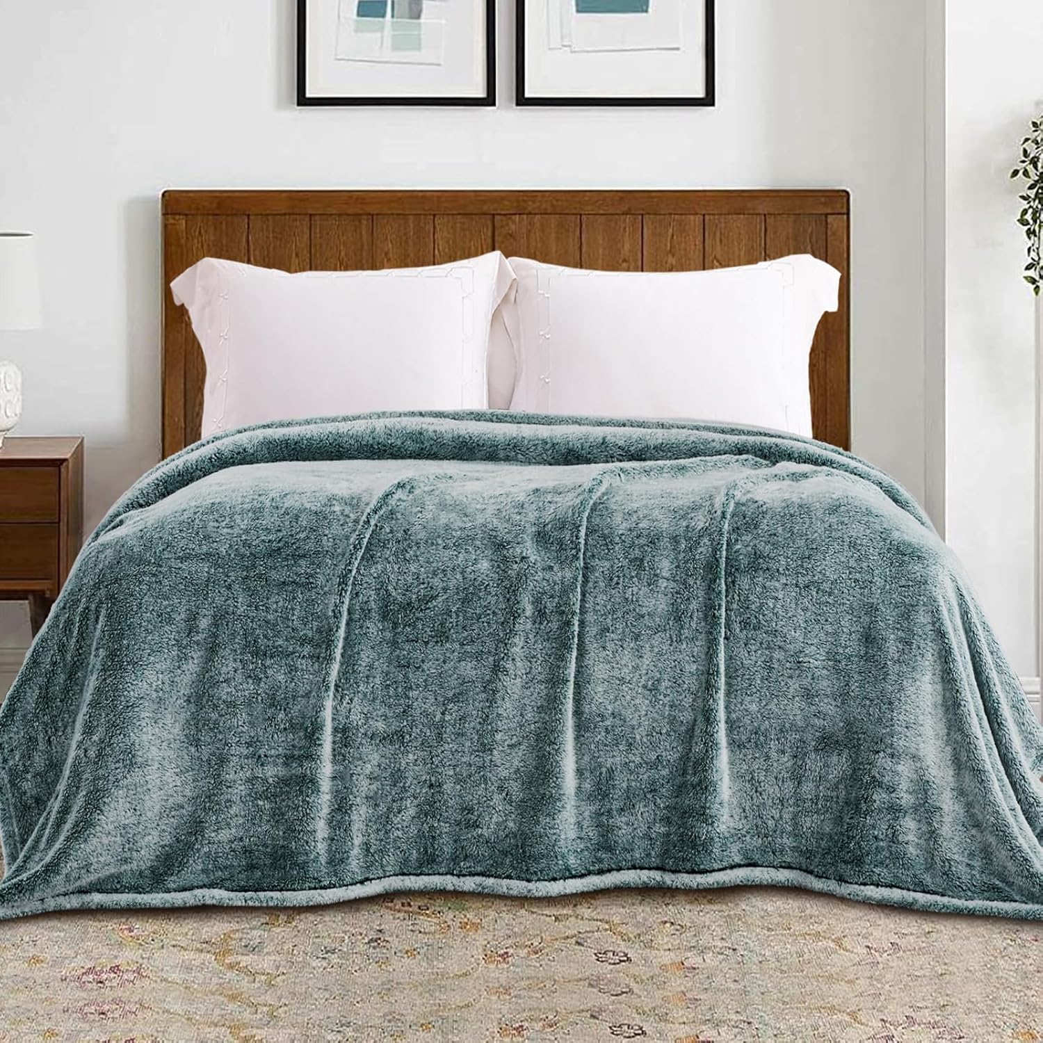 Exclusivo Mezcla King Size Fleece Bed Blanket, 230×265 CM Large Fuzzy Bed Blankets, Soft Velvet Plush Blanket for Bed, Mixed Forest Green Blanket
