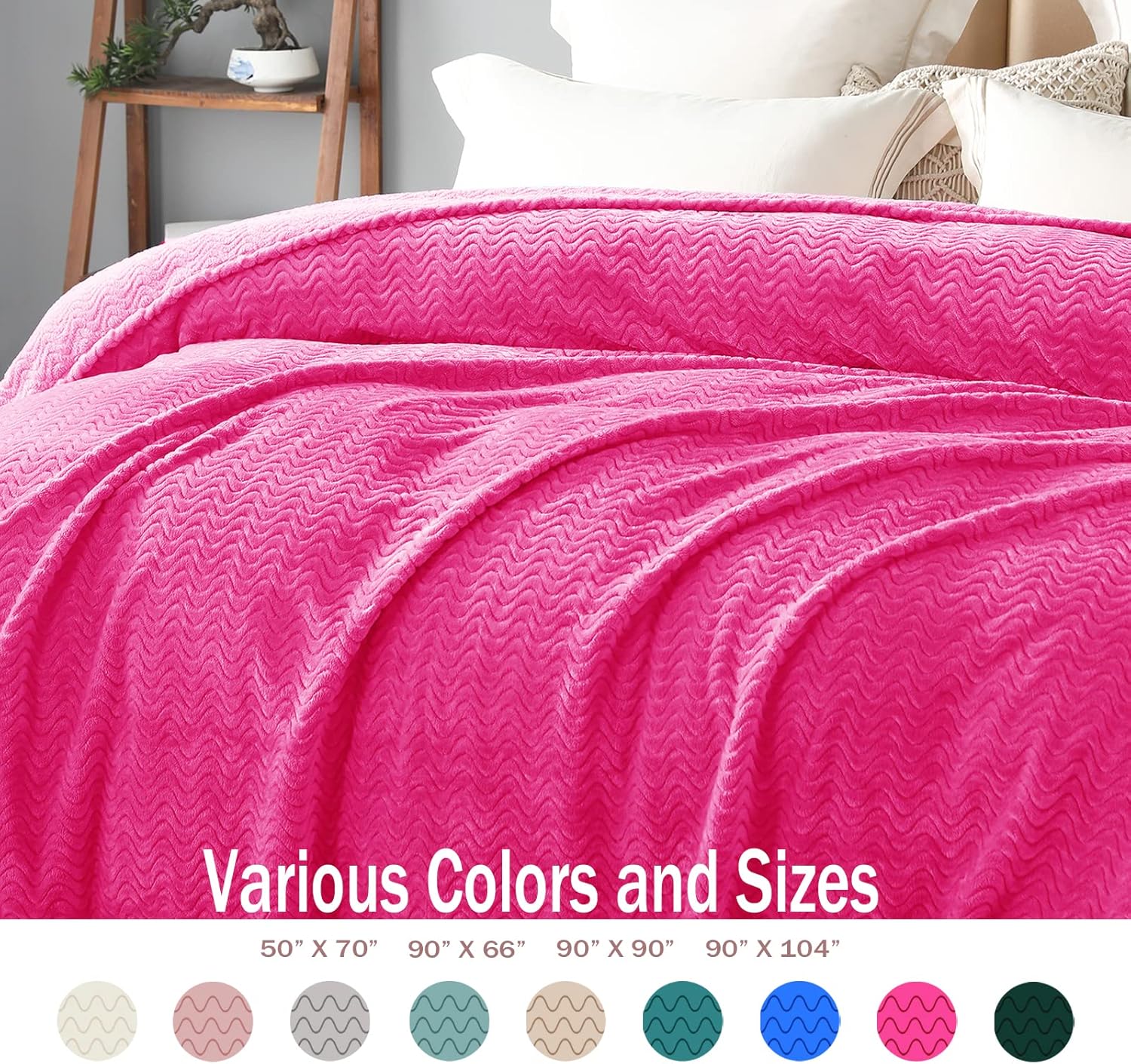Exclusivo Mezcla Large Flannel Fleece Throw Blanket, 127×178 CM Sofa Throws, Soft Jacquard Weave Wave Pattern Throws for Sofa, Hot Pink Blanket